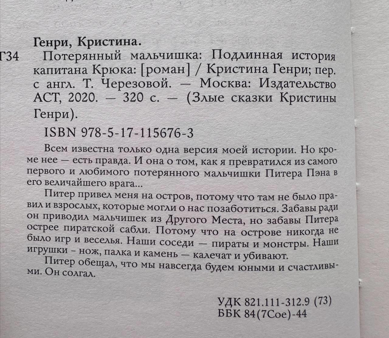 Даже не знаю – есть ли смысл делить отзыв на два: со спойлерами и без, если автор даже не подразумевала такой идеи. Только сейчас, когда я села готовить рецензию по книге Кристины Генри, заметила аннотацию – являющуюся ещё большим спойлером, чем её название «Потерянный мальчишка. Подлинная история Капитана Крюка». Подумала, что быть может это импровизация российских издателей. Залезла на Амазон и поняла, что это не надмозг российских переводчиков. В разных издательствах этой книги одна и та же аннотация, видимо за авторством самой писательницы.