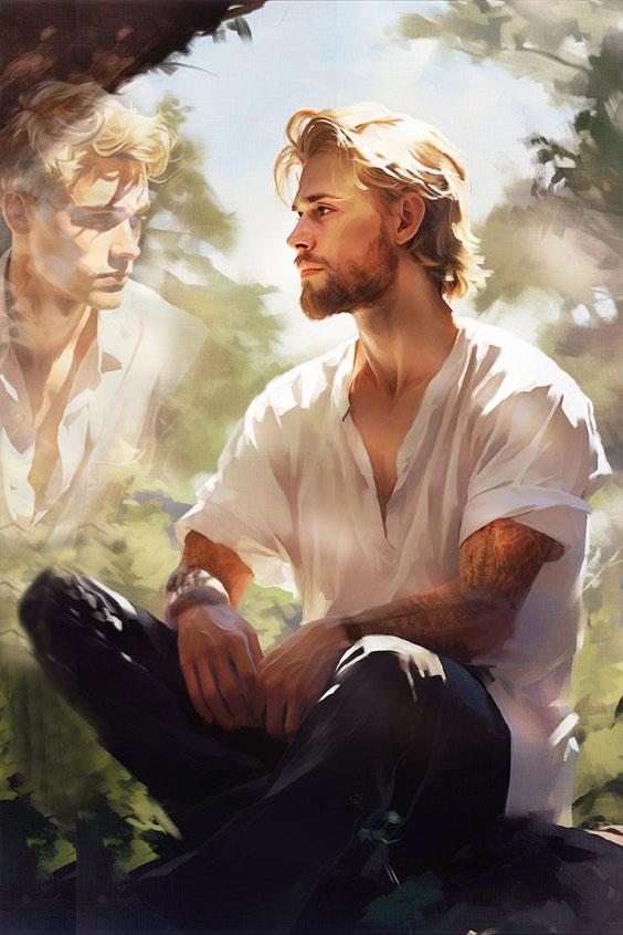 ![]() | Ну, с топ-1 мне все абсолютно ясно, его прочно оккупировал Дерек (или Деркэн Анодар) из романов "Выбрать волю" и "В поисках солнца". В обоих текстах прямо обозначается, что он красив, даже "смазлив". Собственно, можно как раз сказать, что он красив неконвенционально. Невысокий, субтильный, с нежным симпатичным личиком. На арте ему 40 лет, тут хоть борода начала отрастать и костяк чуток нарос, а то был совсем миленький. К внешне гармоничным и правильным чертам добавим светлые золотистые волосы, яркую сияющую улыбку и бездну обаяния. Ах да, а еще обстоятельства его жизни так сложились, что он набил себе на все руки весьма художественные татуировки-рукава, что прямо начало приманивать к нему особое женское внимание! |