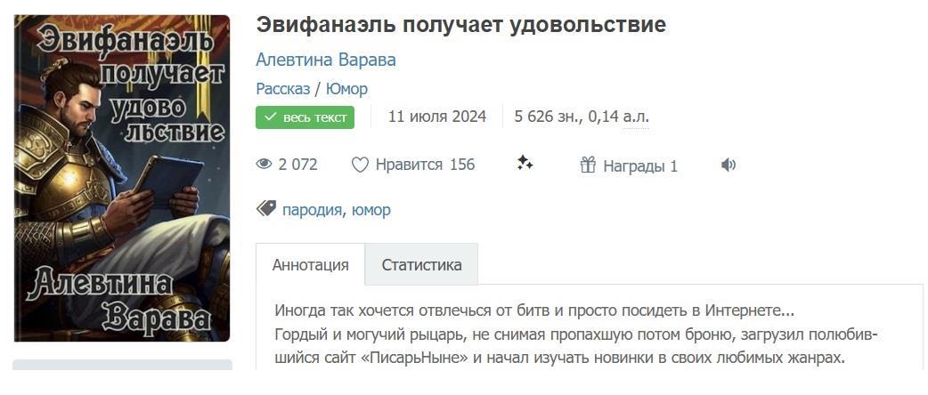 Гордый и могучий рыцарь, не снимая пропахшую потом броню, загрузил полюбившийся сайт «ПисарьНыне» и начал изучать новинки в своих любимых жанрах.