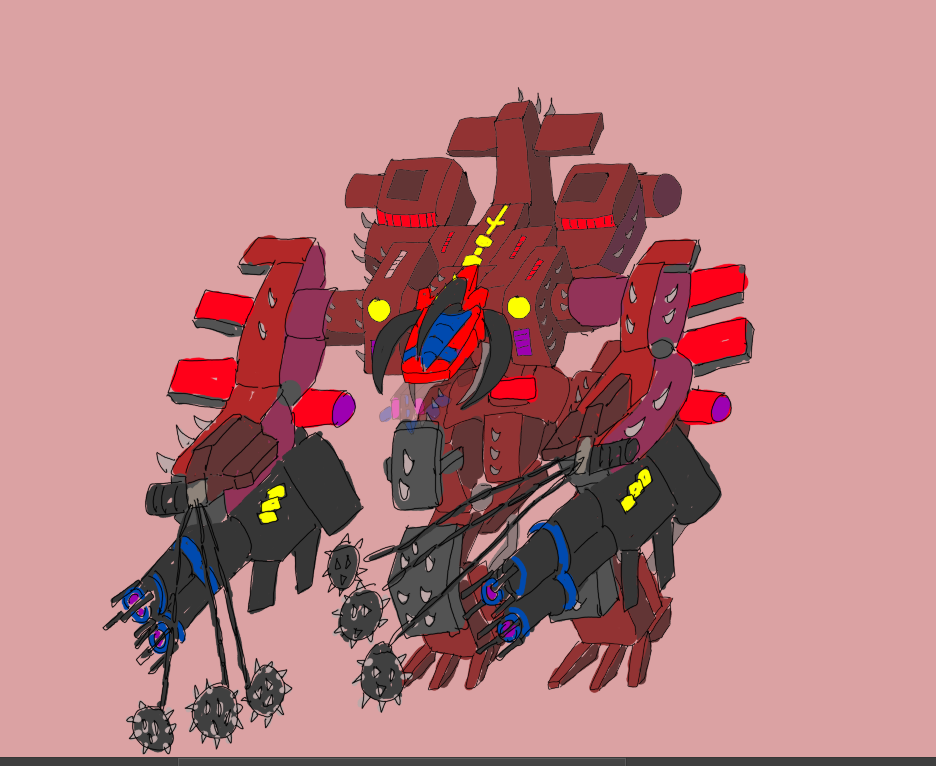 Мегаброня тяжело вооружена ,в отличии от остальных видов по младше, у неё уже есть возможность использовать как лёгкую так и тяжёлую артиллерию , одновременно, что простой рыцарь сделать не сможет (если не затрофеет термоядерный реактор и плазменное ядро с мобильной брони людей) .
