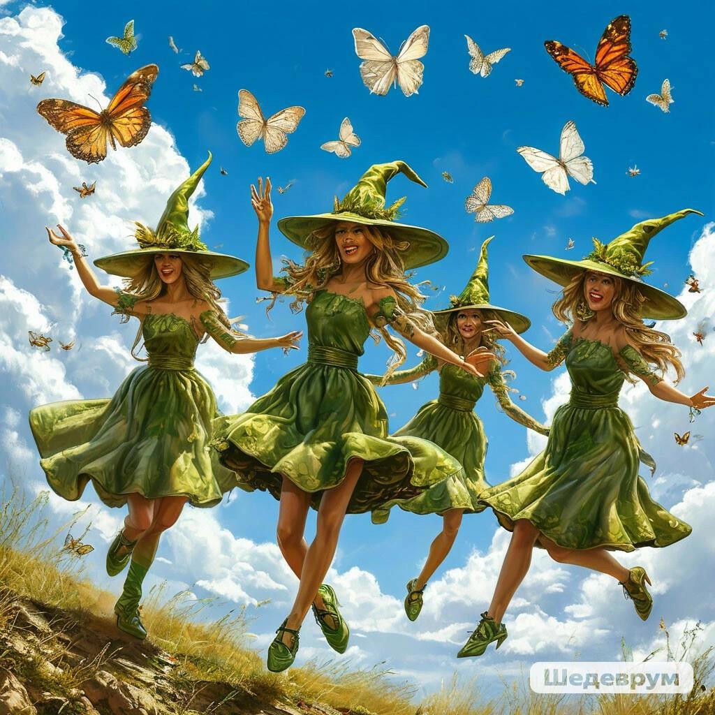 А там, ей богу, было на что посмотреть. Субтильные и костлявые подруги дали достойный отпор огромным гоблинам. Ведьмы словно стайка проворных зелёных птиц кружила над неповоротливыми великанами, заслоняя им обзор и не давая пуститься в погоню. Они плевали в глаза стражников ядовитой горючей слюной, обездвиживали их своими магически заряженными шарфами из воздушных тканей, что на деле оказались весьма прочными.