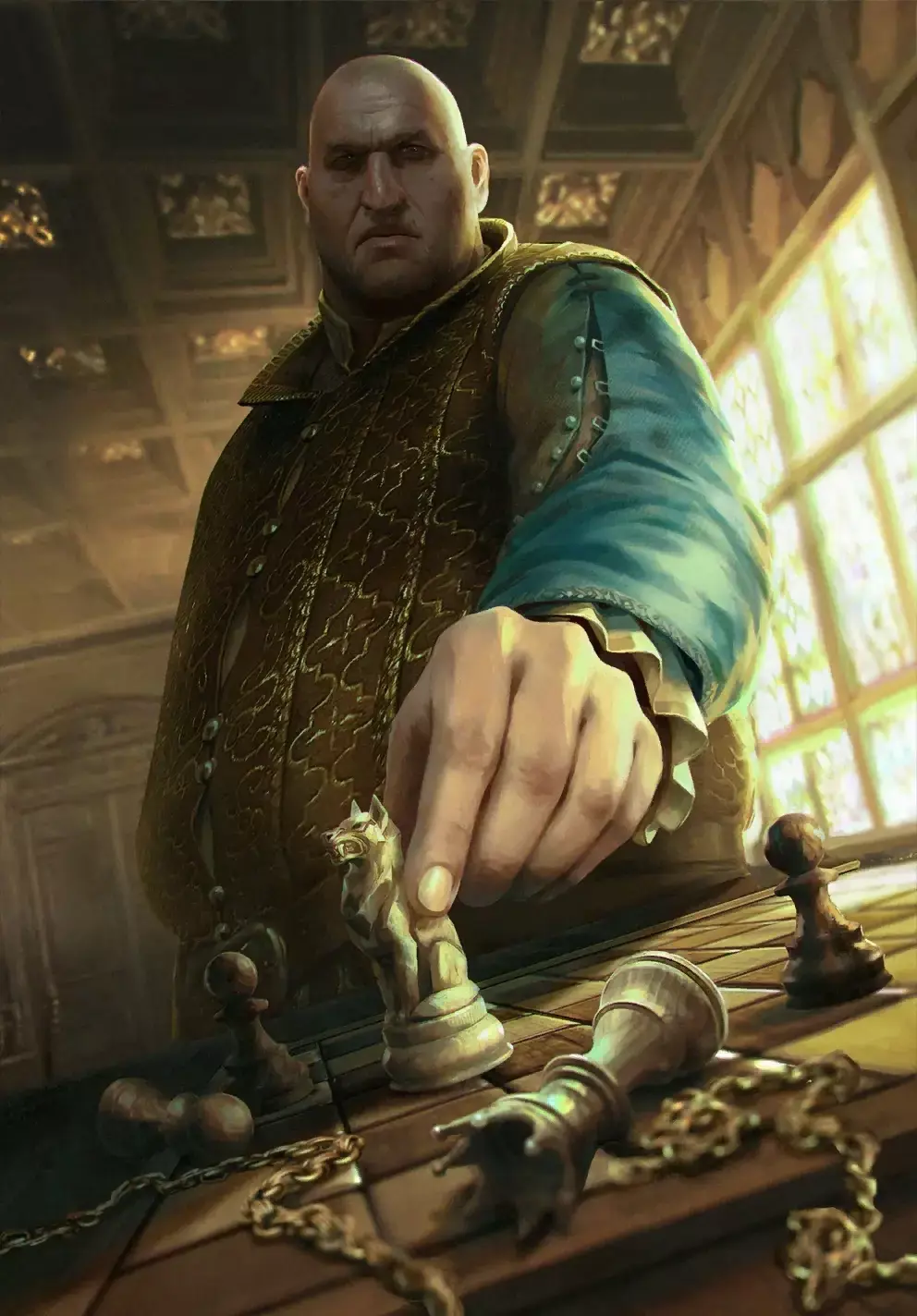 4. Ну и нельзя не упомянуть самые популярные из пришедших мне на ум вариации таких персонажей. Первым мне на ум пришёл Король нищих из Ведьмака. Почему-то он у меня в голове смешался с Дийкстрой, который в игре тоже уже давно не шпион, а криминальный авторитет. Дийкстра не настоящий Король Нищих, но в моём списке референсов будет именно он:
