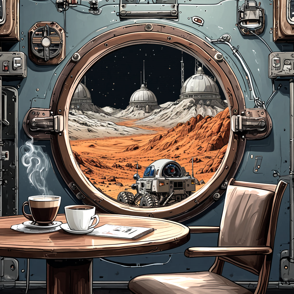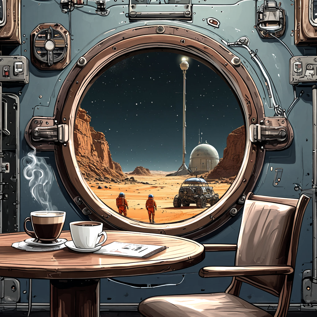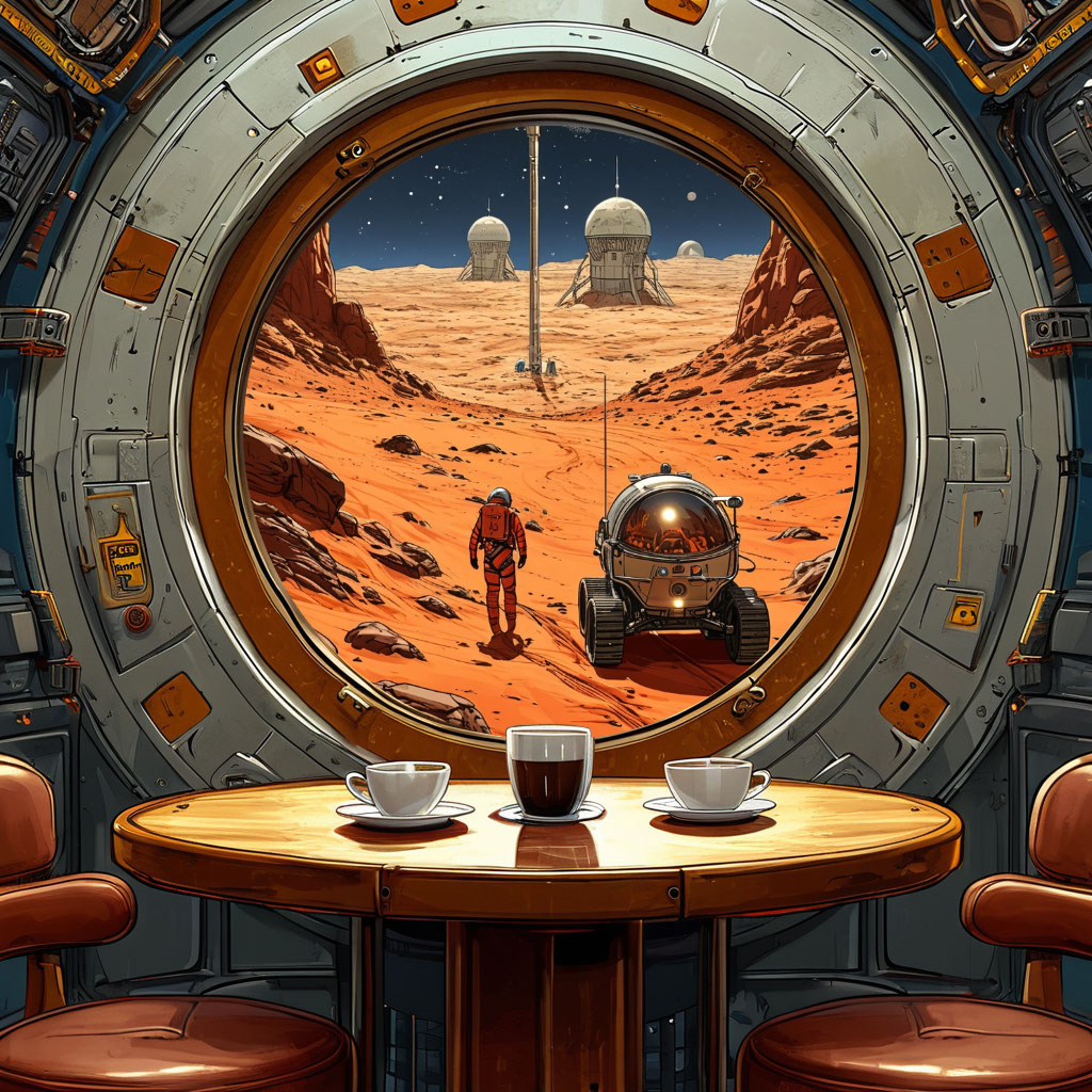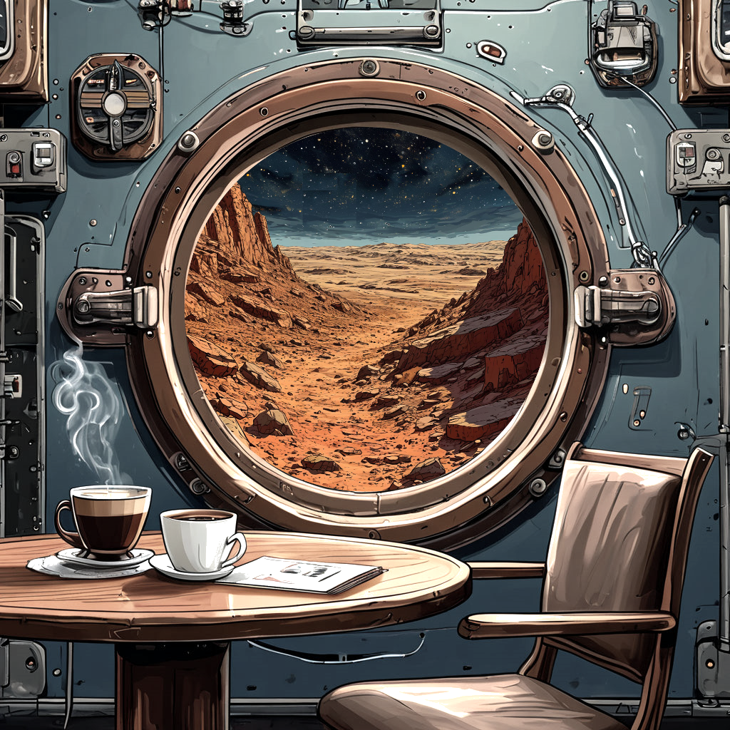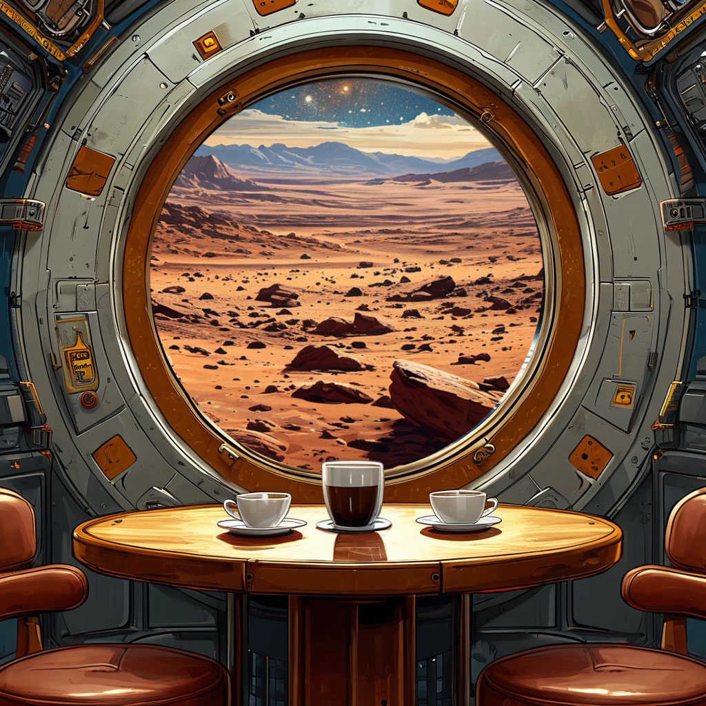 Точнее - из иллюминатора кают-компании марсианской станции "Тёплый Сырт" на окружающий пейзаж.