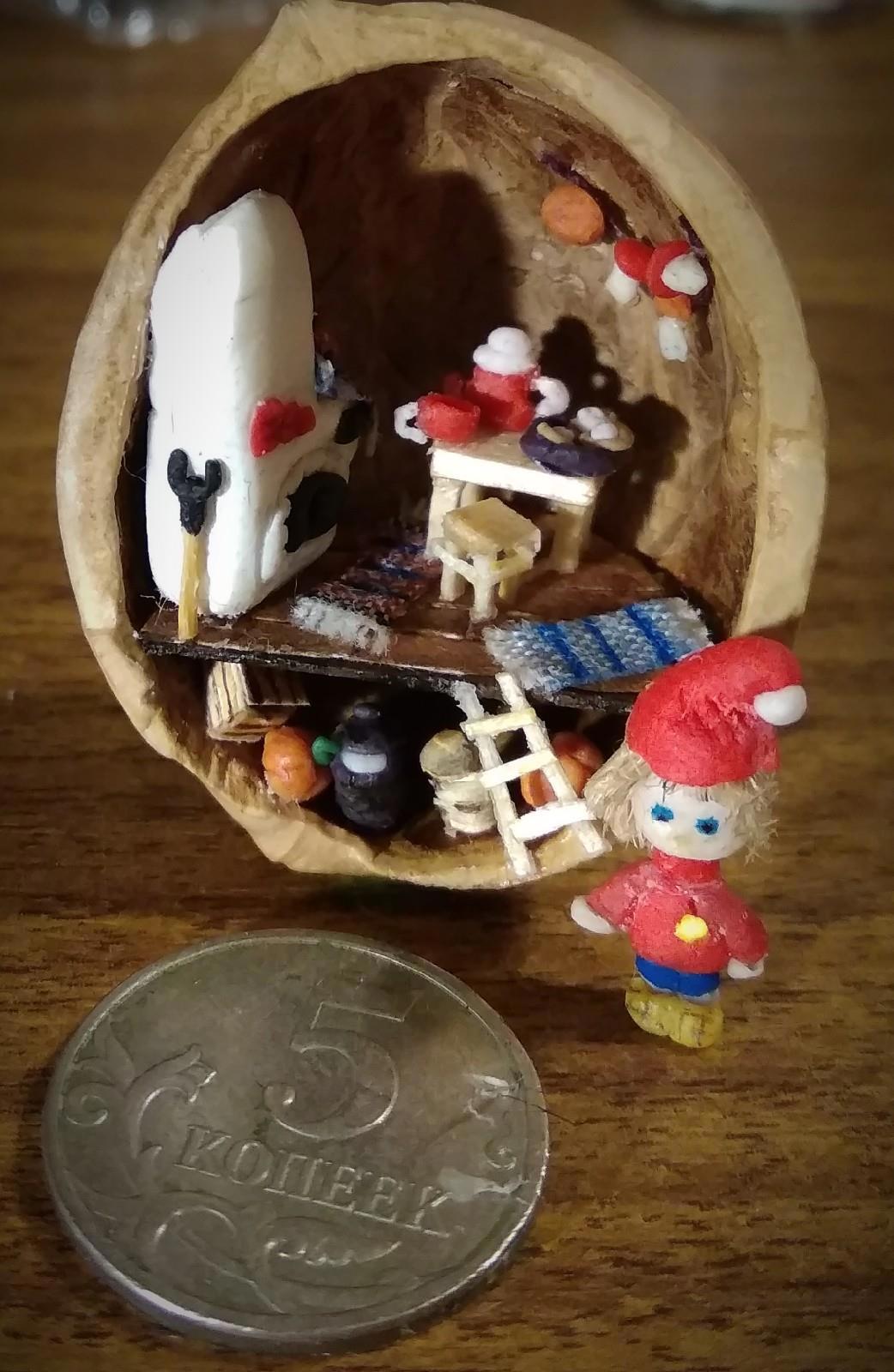 Автор: Нита СераяНе про тексты, просто хочется показать... Давно хотела попробовать сделать такую штуку, и почти не верю, что у меня что-то получилось ) Мышиный орех готов полностью, а вот комнату гномика (или домового... кто его там разберет) надо еще украсить по новогоднему.
