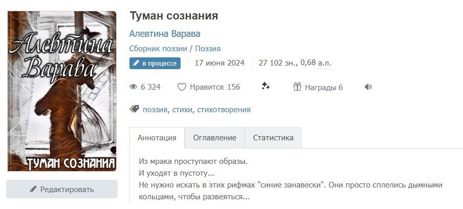 Ваш лайк сборнику поэзии "Туман сознания" очень порадует автора (ссылка)