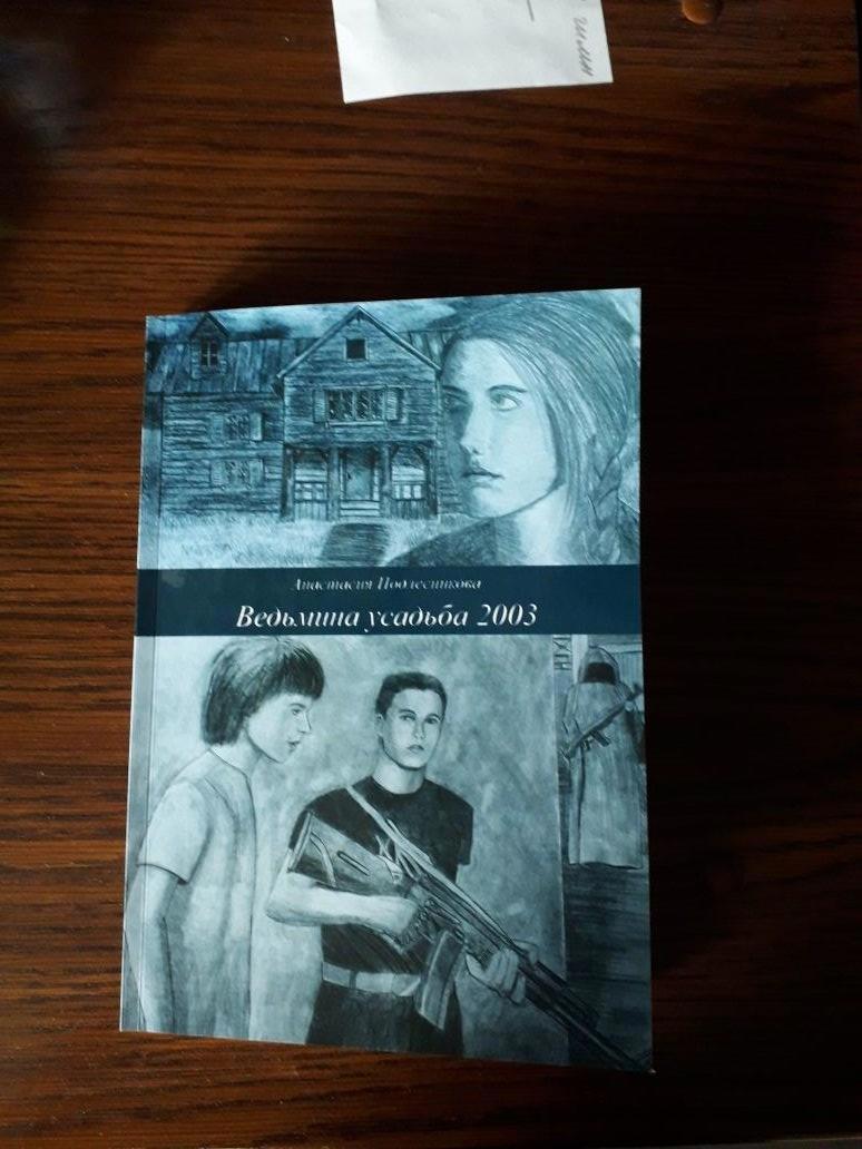 Правда, это версия до переиздания, теперь обложка выглядит чуточку по-другому (изменена полоса заголовка на свиток и добавлены название серии и номер книги). Снизу слева: тот самый главный персонаж, главный "любопытный нос", который и пропал, правее с АК - его двойник, мой любимый персонаж. А в верхней части обложки - подружка-одноклассница ГП, за её спиной - та самая усадьба, которую почему-то ещё 17 лет назад мне так и хотелось назвать ведьминой.