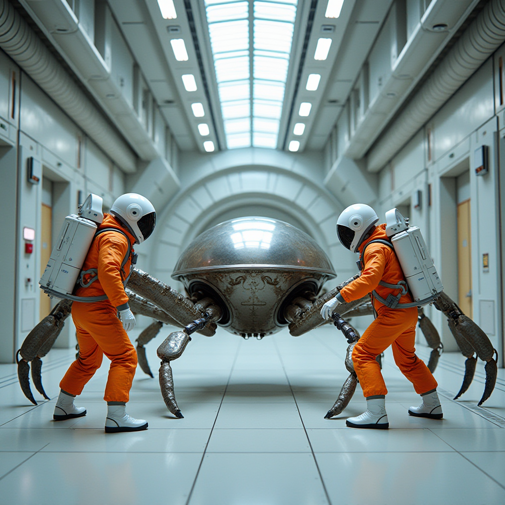 Уф, закончил обработку Иллюстрации с космокрабом к "Главе 4. Космокрабы" романа "Прайм". ДоГ (Нейросеть) рисует двух зеркально-идетничных астронавтов - экономит биты и флопсы зараза. Пришлось править.