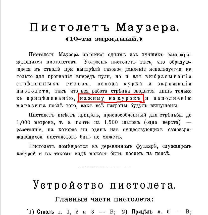 Страницы из "Описания устройства пистолета Маузер и наставление для обучения стрельбы из него", Российская Империя, Лифляндская губерния, 1909 год.