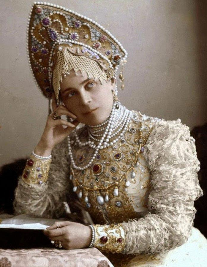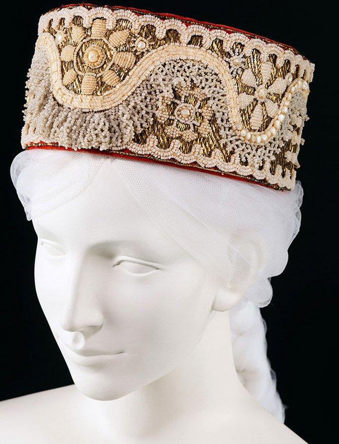 В женском головном уборе могло быть до 16 кг жемчуга.