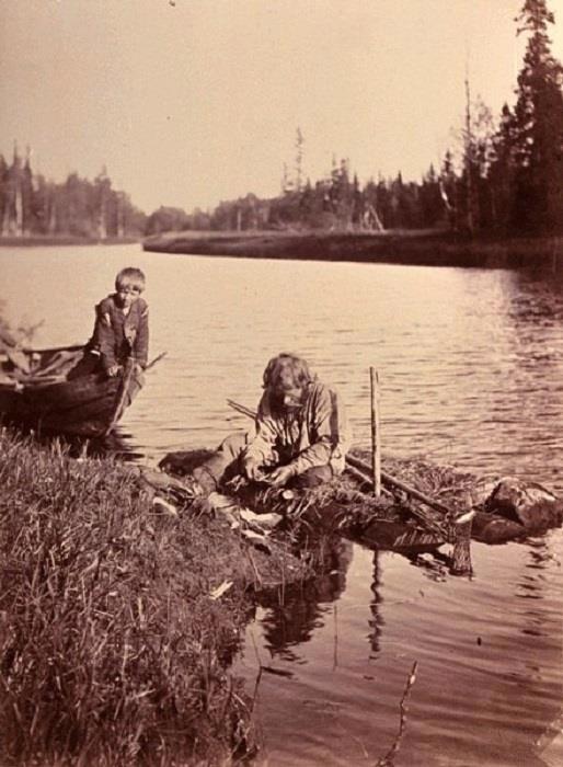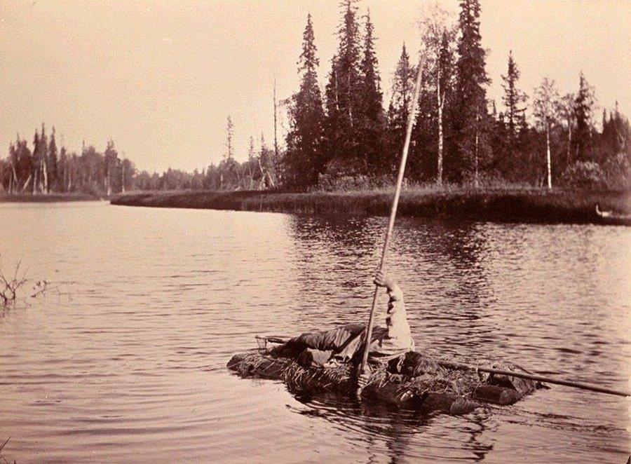 Промыслом жемчуга занимались исключительно мужчины. Температура воды в быстрых северных реках очень холодная, поэтому нырять за раковинами никто не отваживался. Но как сквозь рябь и блики на поверхности воды разглядеть лежащую на дне небольшую ракушку? Для этого старатели использовали оригинальное, хотя и незамысловатое приспособление — «водогляд». Он представлял собой полую берестяную трубу, которая опускалась одним концом в воду сквозь отверстие в плоту, а к другому концу добытчик плотно прижимался лицом, разглядывая дно реки.