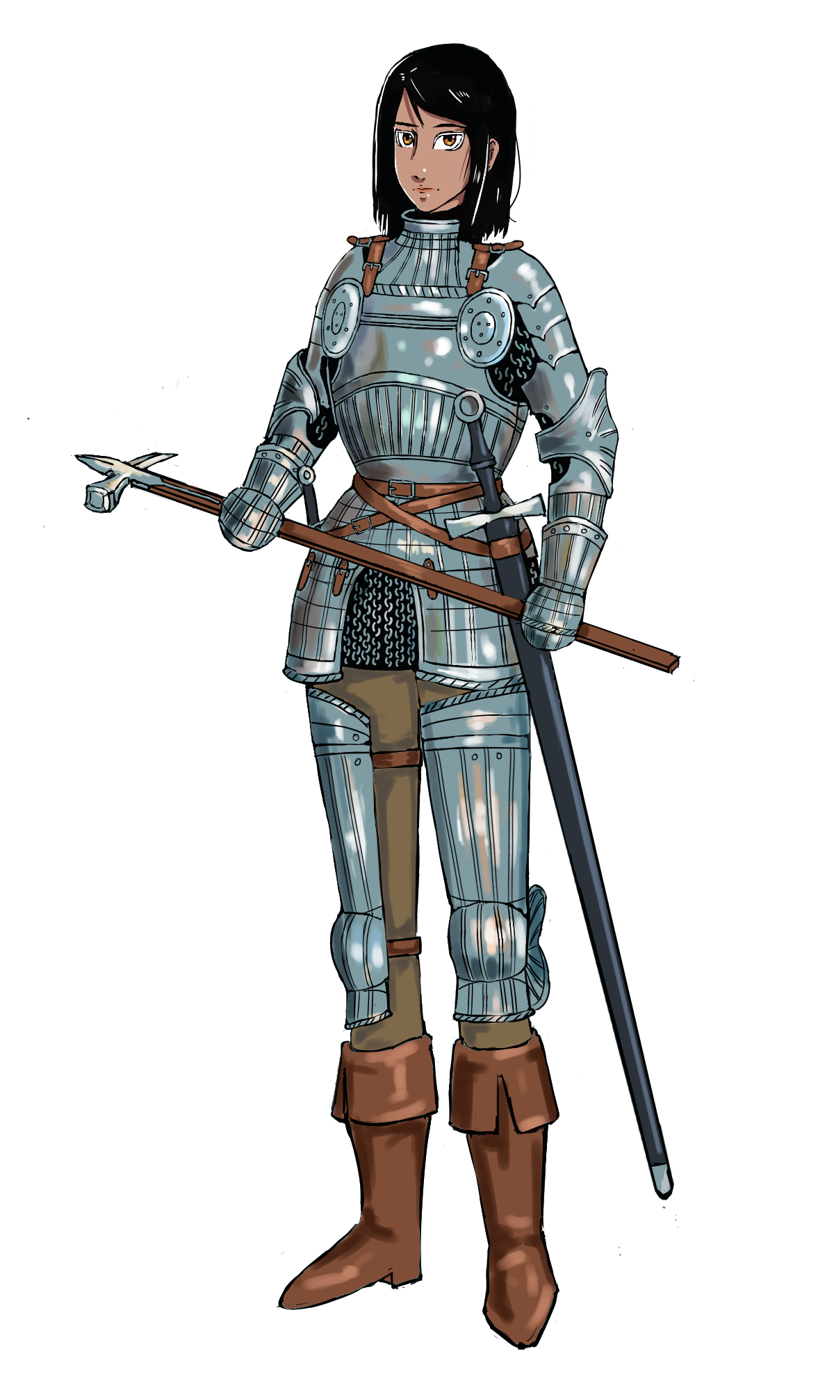 Выкопал в сети некого азиатского художника с ником иероглифами, который рисует девушек в доспехах. Качество рисунка довольно простенькое (половина работ у него вообще в пиксель-арте), зато мне очень понравились дизайны.