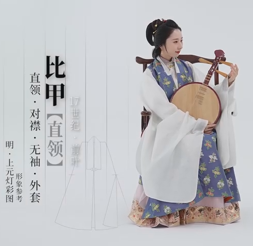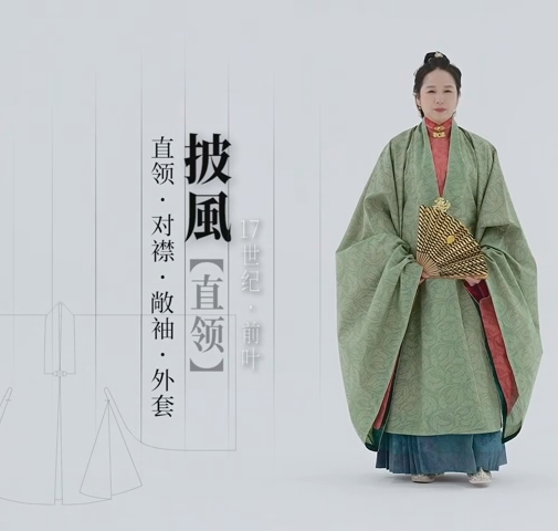 Ворот выкроен по прямой 直领·параллельные полы "дуэйцзинь" 对襟·широкие рукава 敞袖·верхняя одежда 外套