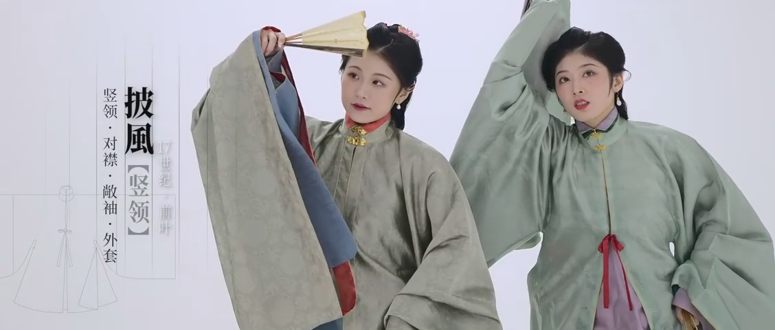 Стоячий воротничок "шулин" 竖领·параллельные полы "дуэйцзинь" 对襟·широкие рукава 敞袖·верхняя одежда 外套