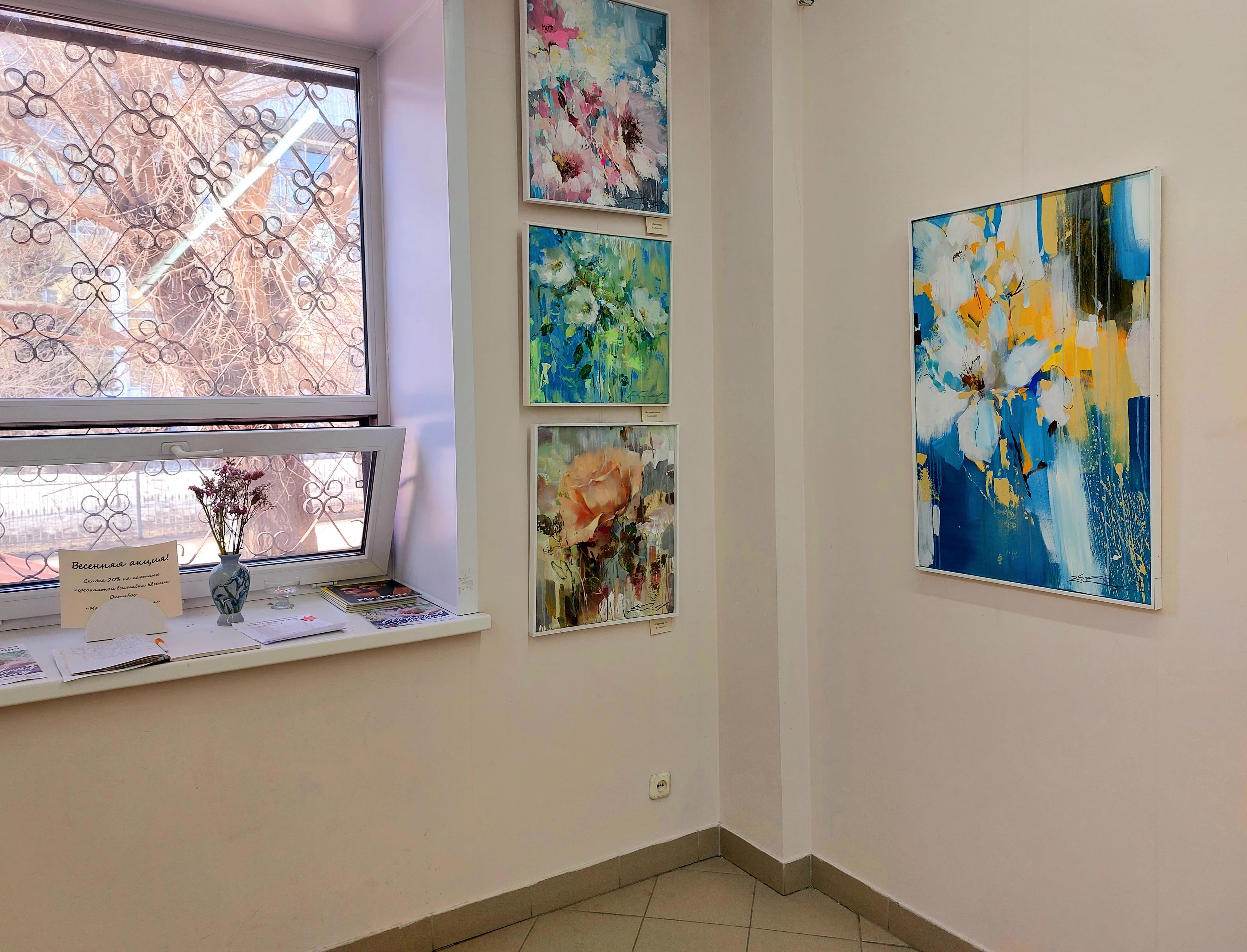 А кому радости, цветов, весеннего настроения? Фоторепортаж с выставки живописных полотен + один стих