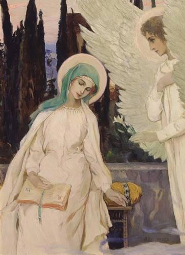 Моя, наверное, самая любимая картина по теме, - Джордж Хиллард Суинстед, "Послание ангела". Мне нравится общая нежность и трогательное композиции, хрупкость цветов, невесомость Марии...