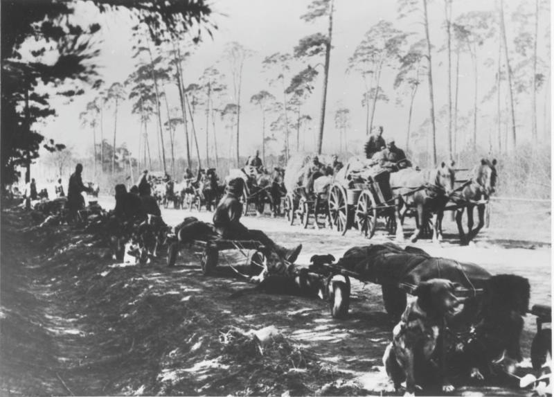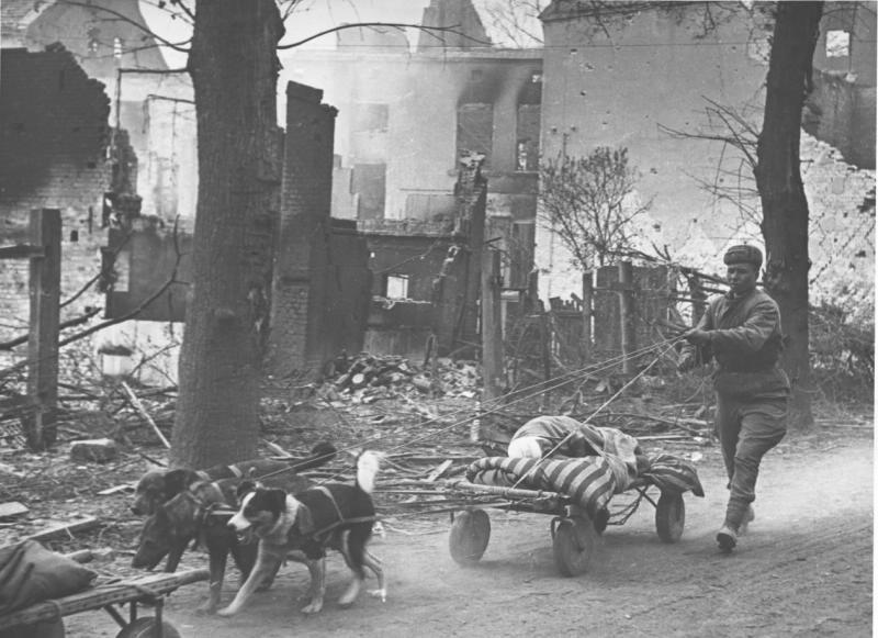 Конец войны, Германия. Собачьи упряжки для перевозки раненых
