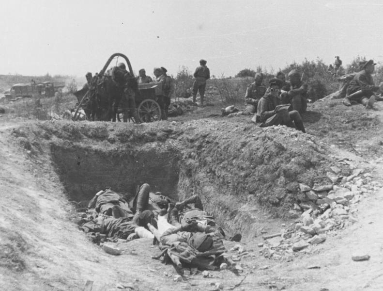 Конная упряжка - привезли раненых на сортировку. тут уже медики ученые - приемный пункт - врыт в землю, только прямое попадание опасно.