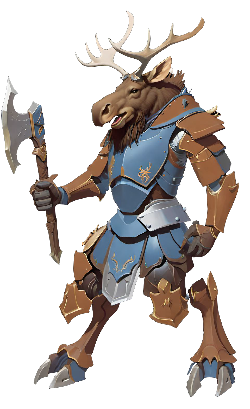 Лось с двуручным мечем. Тут еще думать, так как возможно изменю пропорции - рука уж слишком огромна