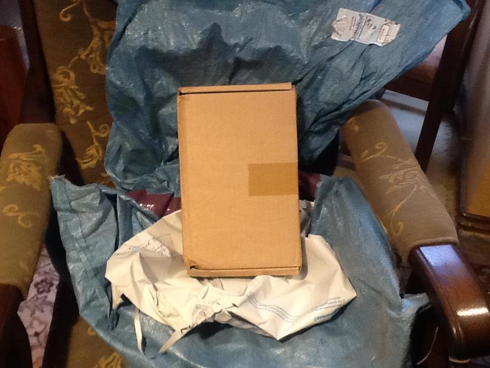 Приехал листонош и вручил мне синий мешок. Я от изумления даже не стала такое распечатывать — нетронутое принесла домой и сфотографировала весь процесс. Мне впервые принесли подарки в мешке!