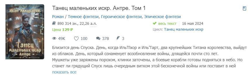 Автор: Иван АккуратовНе взять Танец даже в лонг-лист Эпического фэнтези! Удар по самому больному месту писателя - раздутому самомнению! В самое сердечко, Полынь, в самое сердечко. Взял вас на карандаш.