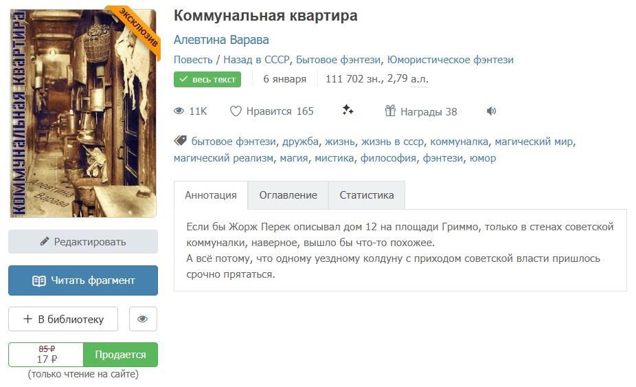 Автор: Алевтина ВараваНепохоже, что моя авторская активность наберёт обороты в праздничные недели, и потому всеобщему вниманию: скидки по 80% в течение двух недель. Они пройдутся по всем платным началам циклов и одиночным произведениям. Сегодня, например, необычные истории очень странной коммунальной квартиры можно получить всего за 17 рублей)