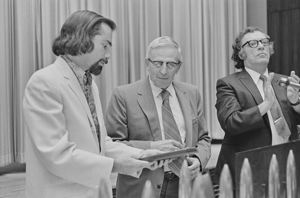 На редком фото великолепная тройка легендарных фантастов: Роберт Сильверберг, Клиффорд Саймак и Айзек Азимов 1971-ый год.