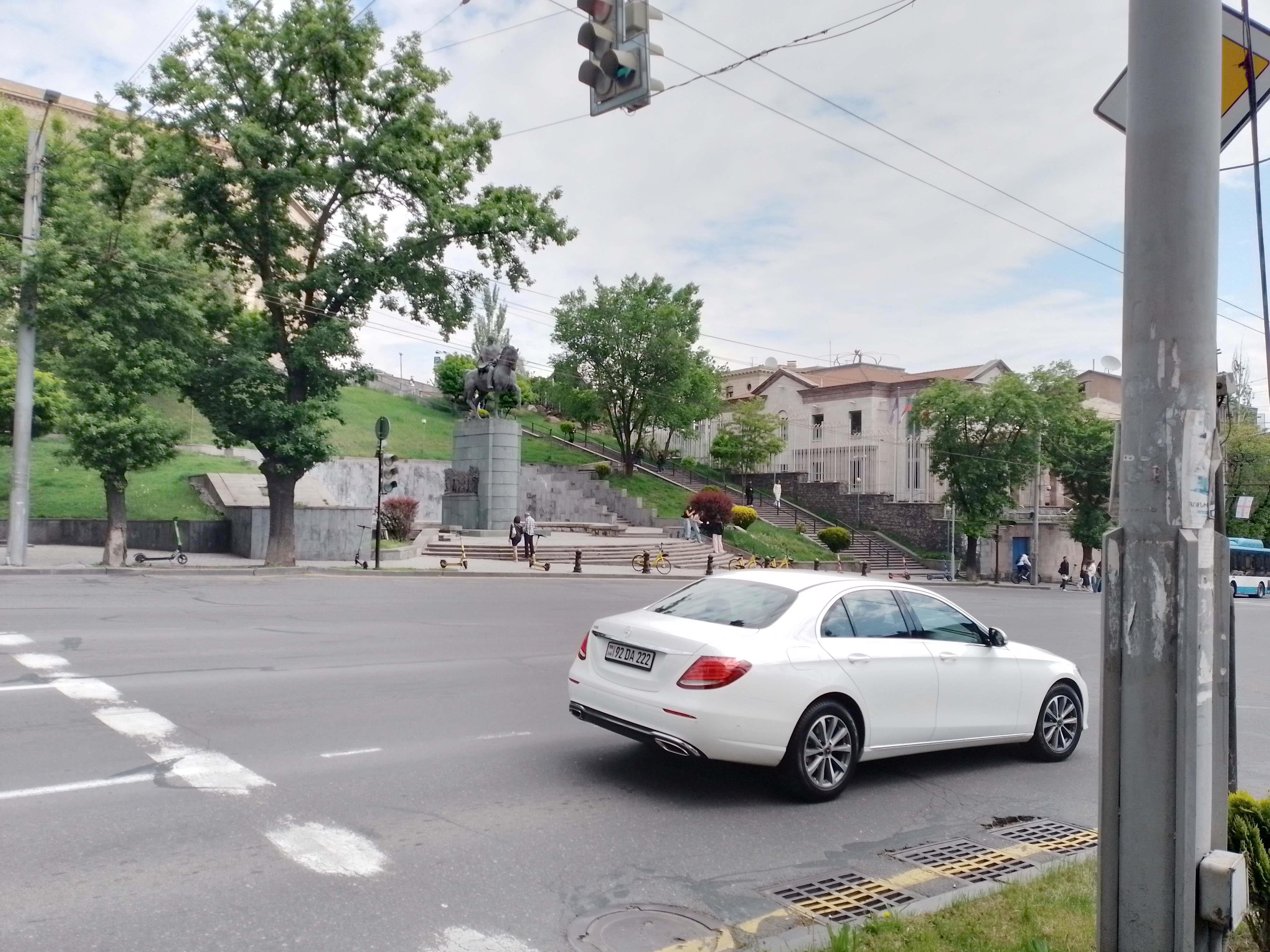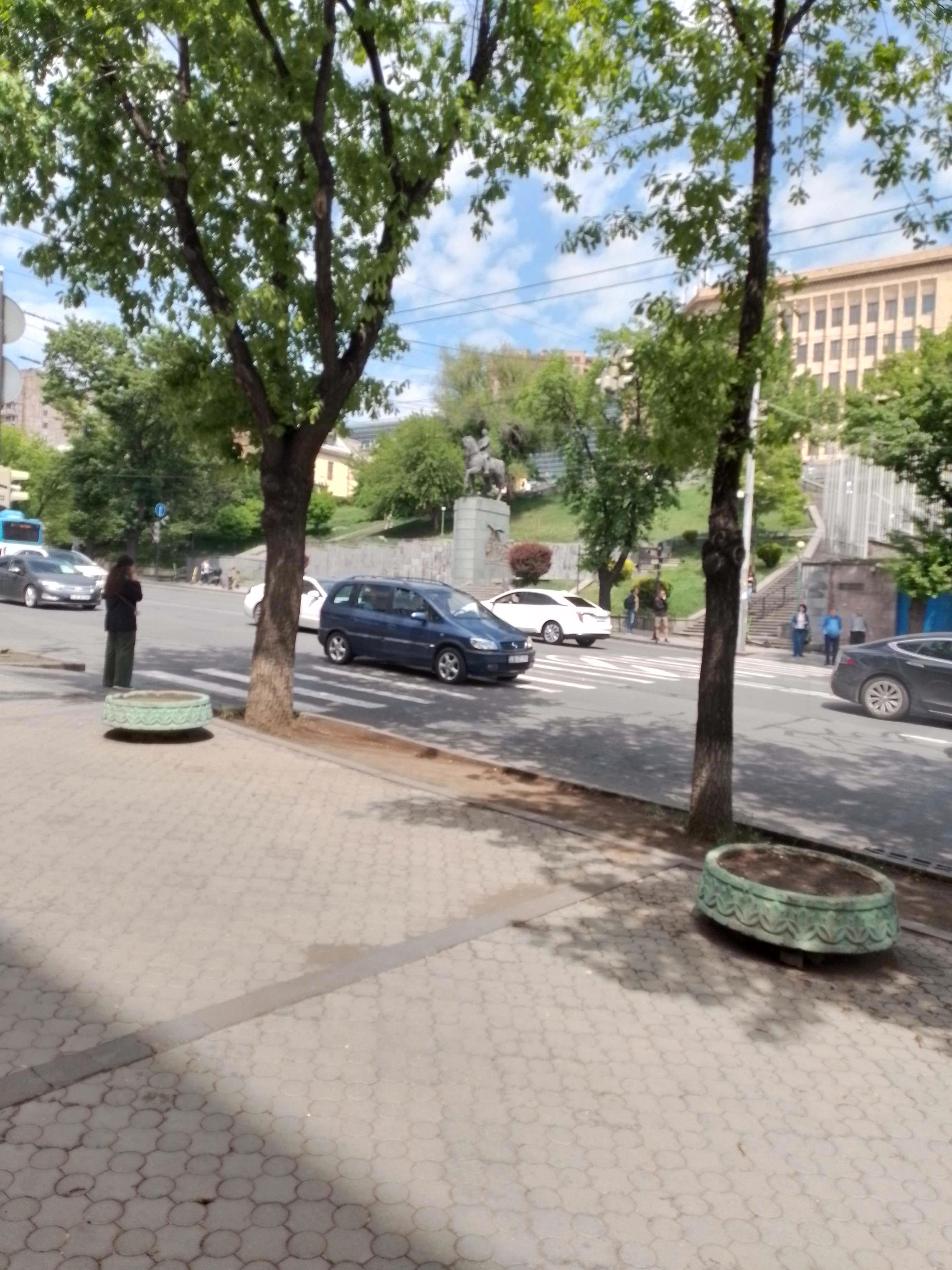Конная статуя вдалеке - это памятник дважды Герою Советского Союза, маршалу Советского Союза Ивану Баграмяну. Задалась вопросом, почему маршал на коне? Вроде во Вторую мировую эпизоды с кавалерийскими баталиями были единичными. Оказалось, что это потому, что военную службу Баграмян начинал в кавалерийском полку. Собственно и сам проспект носит его имя. А еще станция метро, расположенная на проспекте.