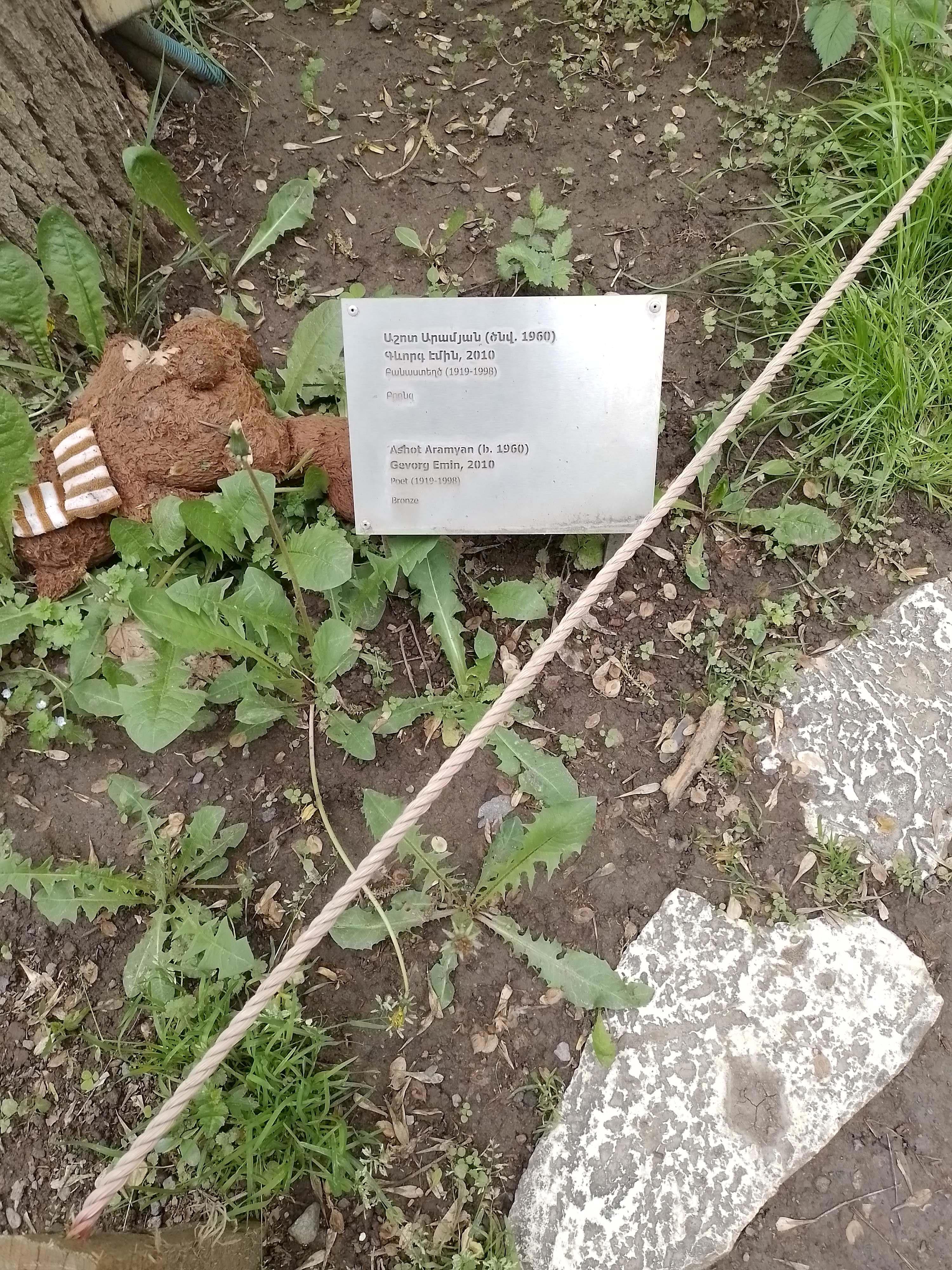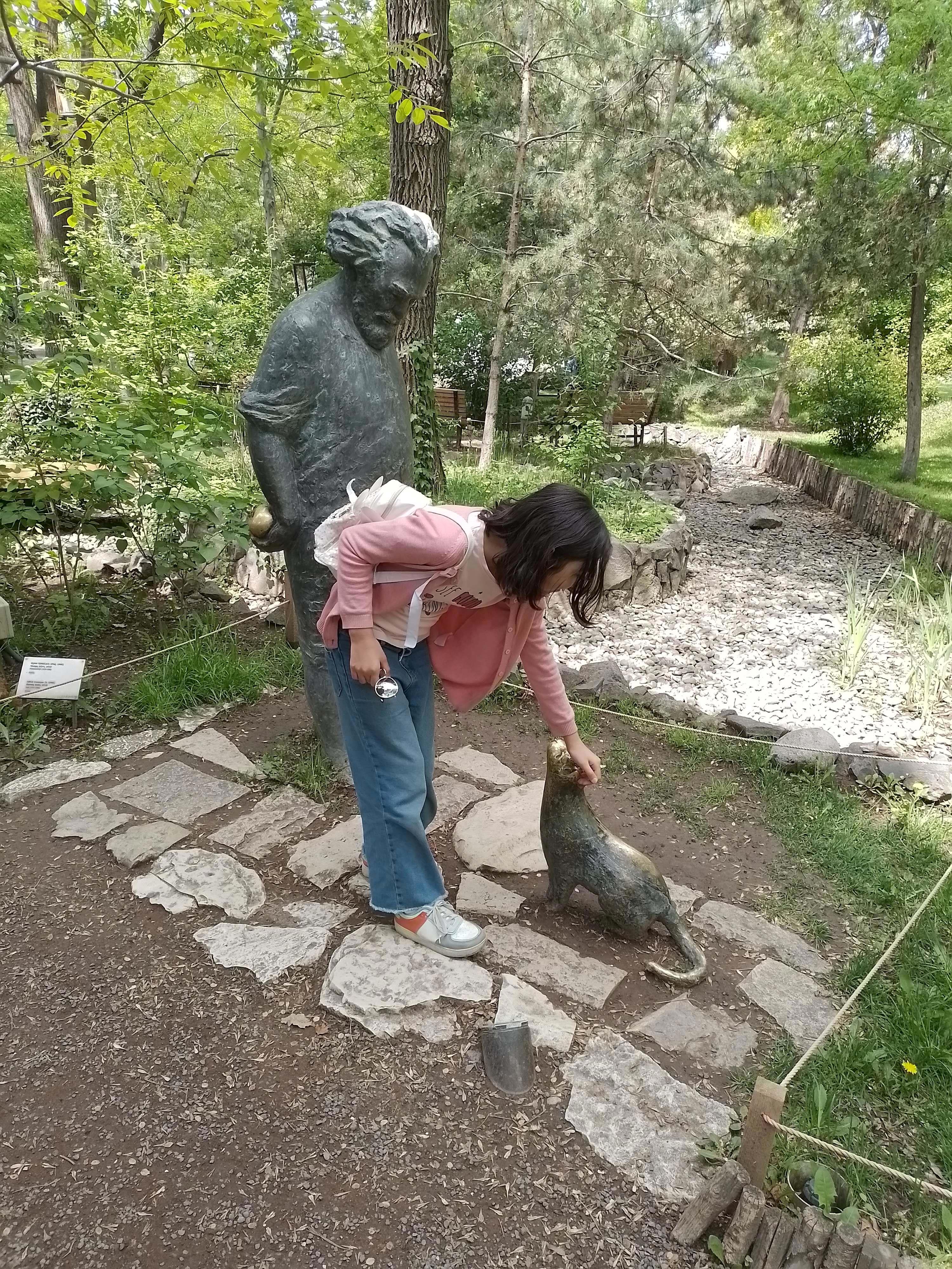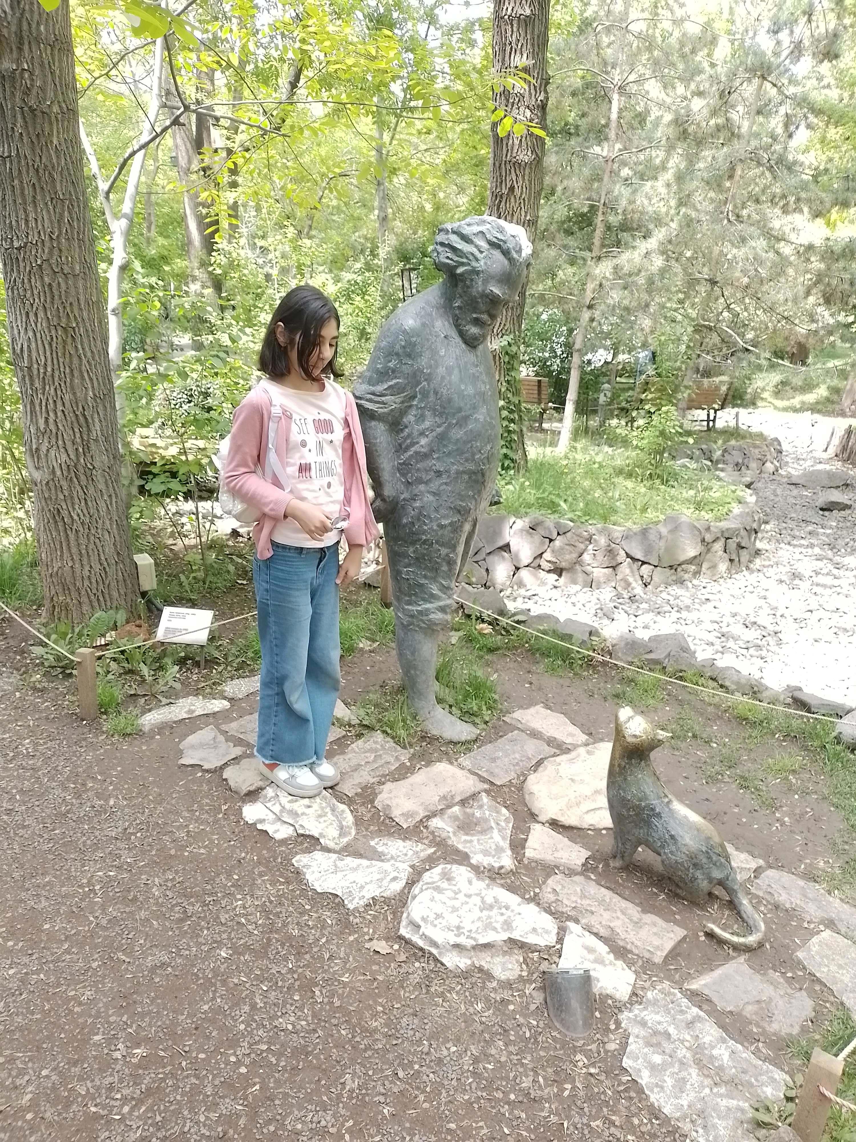 Это памятник армянскому поэту и переводчику Геворгу Эмину и его сиамскому коту.