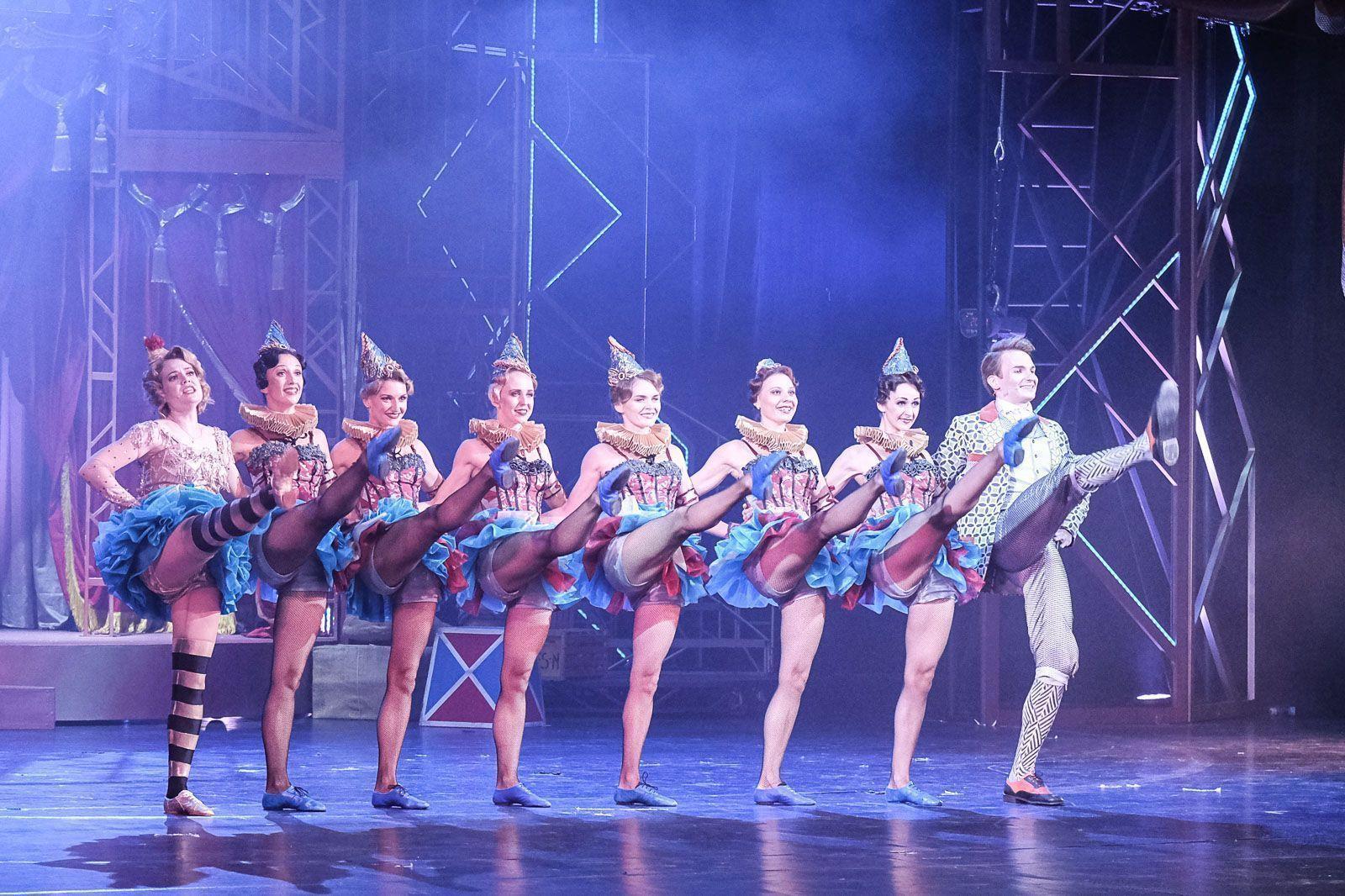 Хочу показать костюмы в финальной части, когда мистер Икс превращается в самозваного принца. Актеры другие, а костюмы правильные. Так выглядела сцена в нашем варианте спектакля. Это как бы вид на цирковую ложу сзади, а цирк на той стороне.