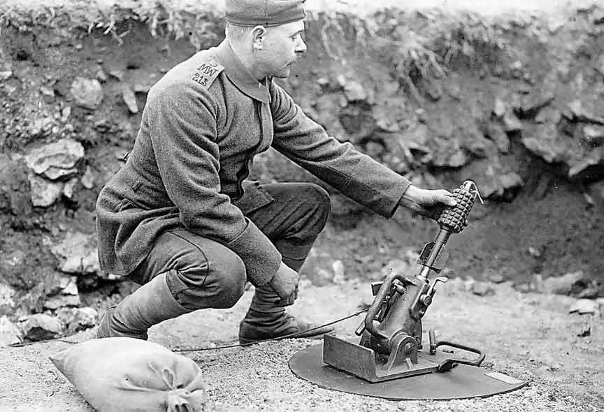 Делали бомбомёты, у которых мина была больше, чем ствол, и делали бомбомёты, у которых мина вкладывалась в этот самый ствол. Они потом переродились в миномёты. Стреляли эти штуки бомбами, да гранатами только вначале, а потом и в этом деле наступил плюрализм. Сделали мины, снаряжённые отравляющими веществами:
