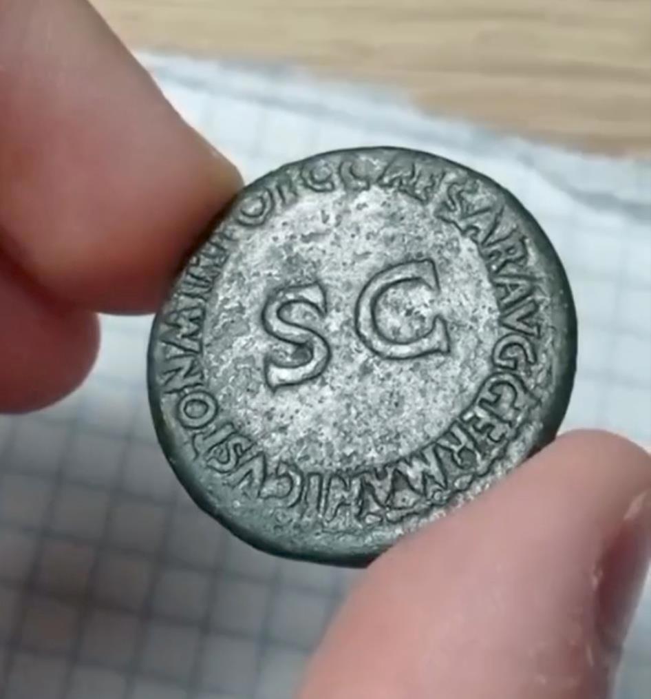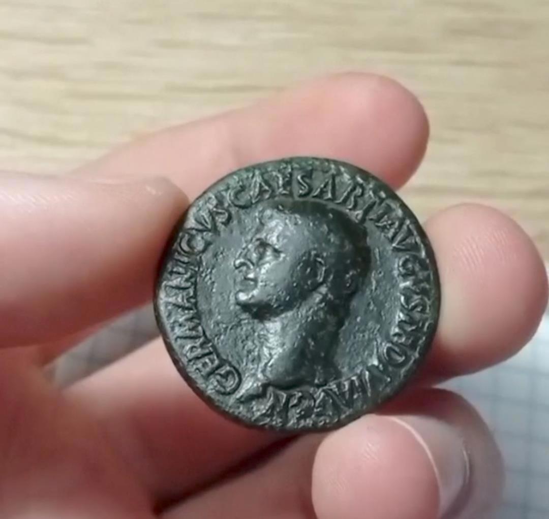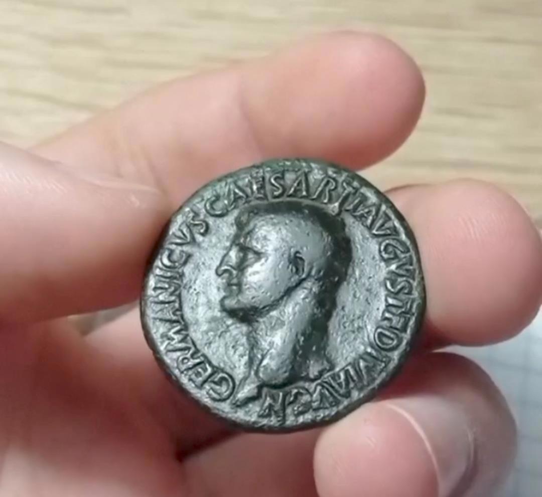 Эта монета из меди номиналом в один асс. Меня в ней привлек красивый, родовитый портрет Германика, с довольно характерными чертами лица.