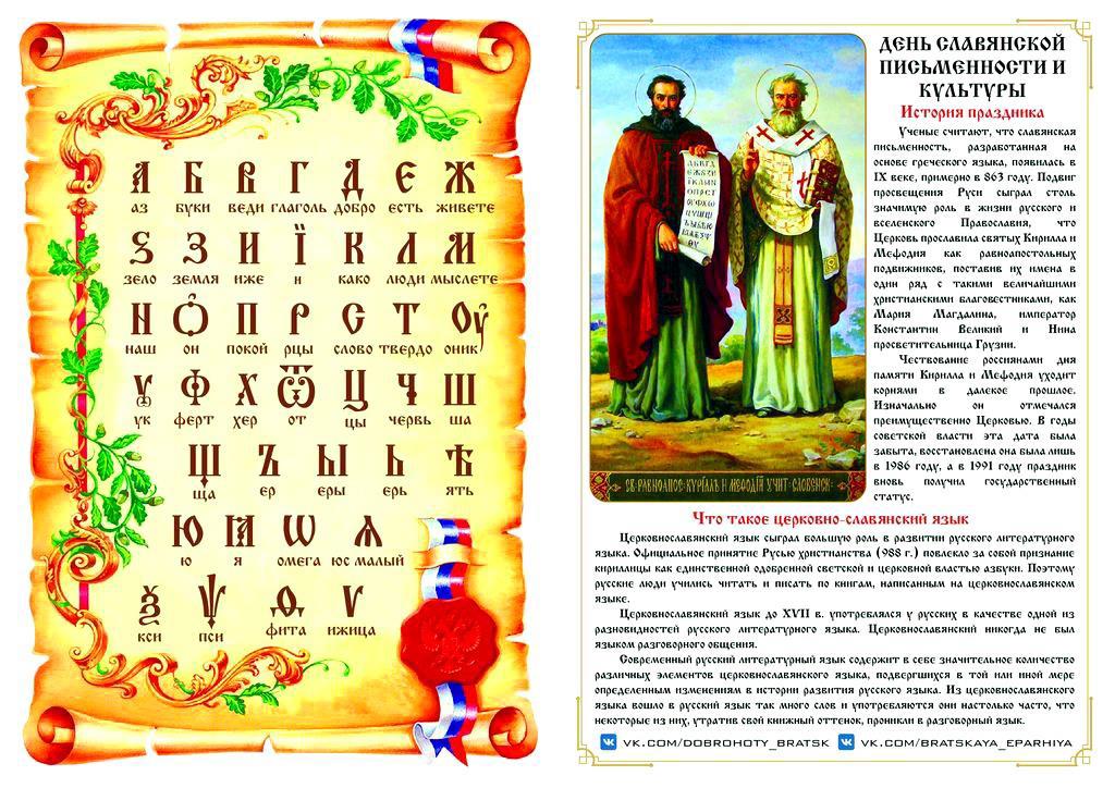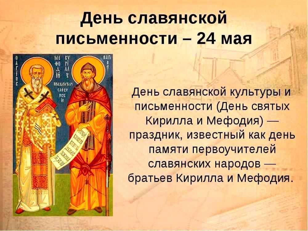 Праздник приурочен ко дню памяти святых равноапостольных братьев Кирилла и Мефодия – создателей славянской письменности.