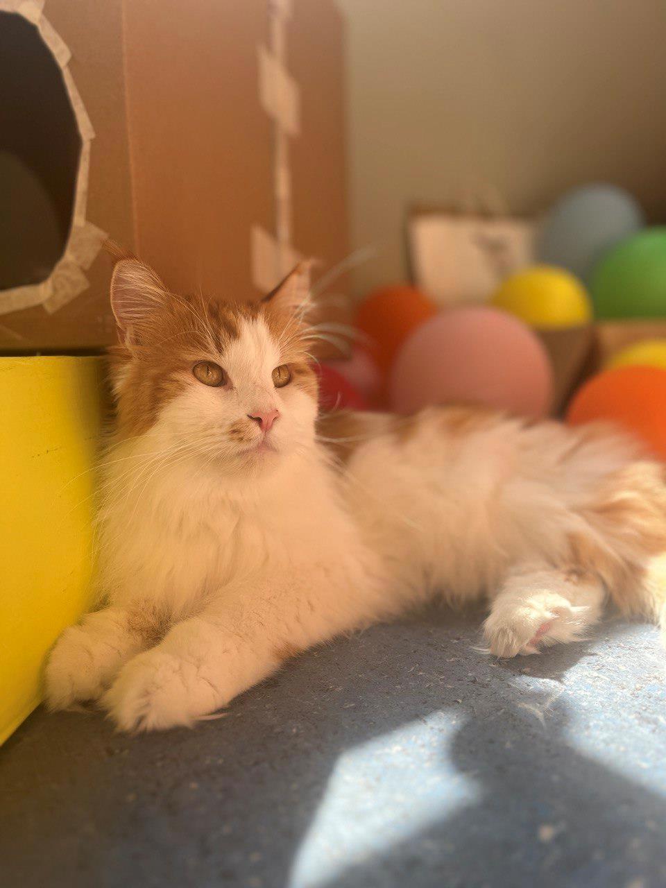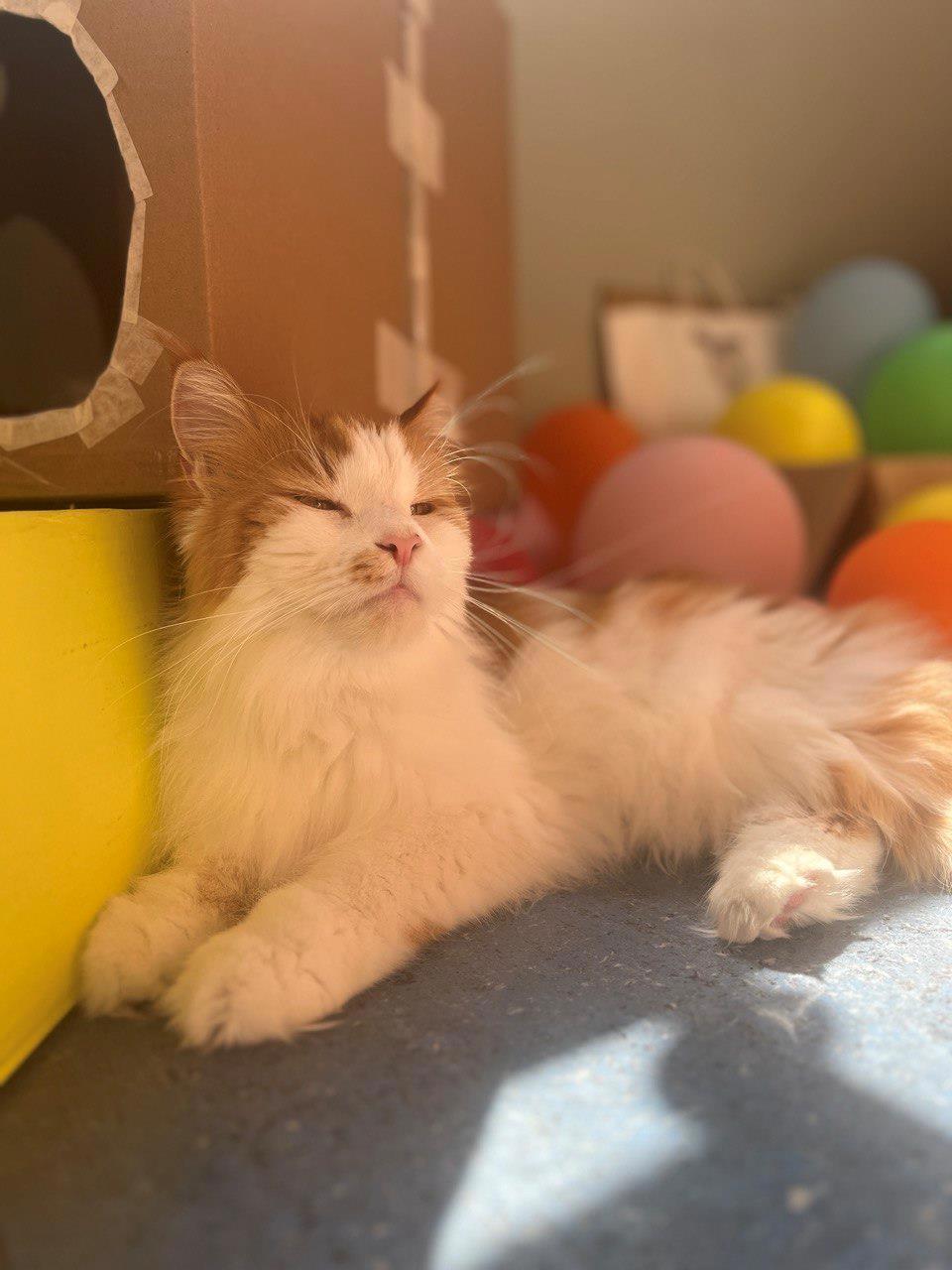 У Кнопочки получается наслаждаться субботним солнцем среди завалов коробок и шаров на балконе.