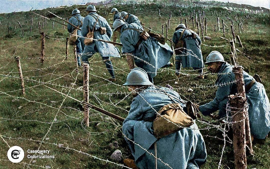 Атака по проволочным заграждениям - французы.