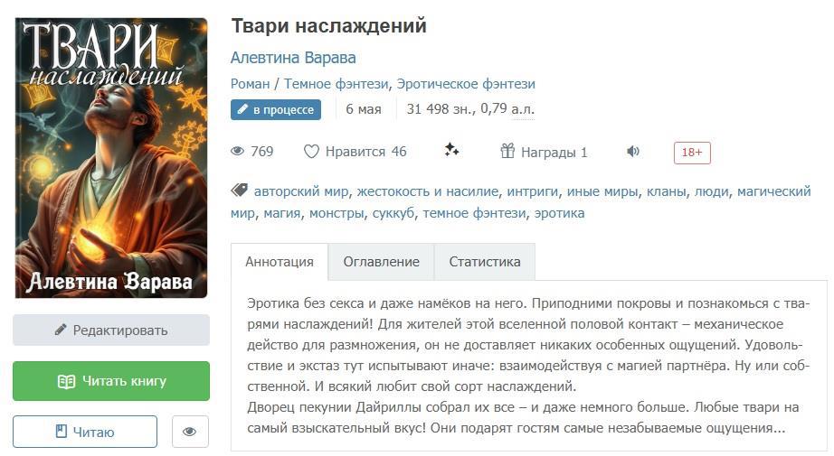 Читать тёмное фэнтези "Твари наслаждений" тут (ссылка). Ваш лайк очень поддержит автора!
