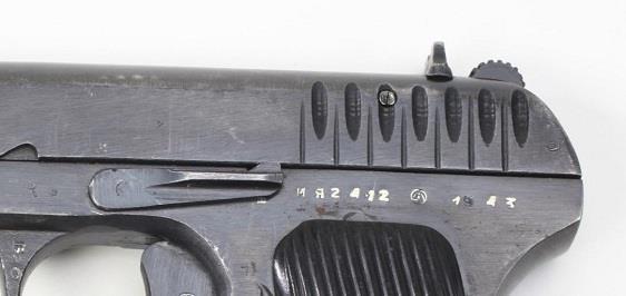 И как так? В 1940-м данный пистолет был «образца 1930 года», а 35 лет спустя стал пистолетом «образца 1933 года». Нет, мне могут возразить, что могла иметься в виду модернизация пистолета. И я отвечу: да, модернизация, действительно, была. И не одна, а минимум две: в 1933 и 1947 годах. Если говорить о чисто внешних изменениях, то после модернизации 1947-го изменилась насечка на затворе. Была крупная, вот такая: