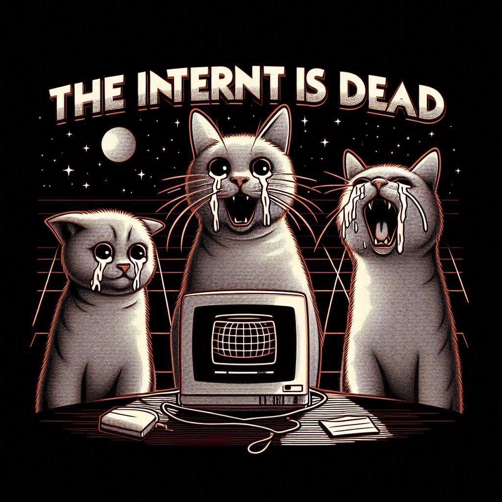 Забавно, но всегда моралфажский Copilot даже согласился сделать картинку с умершим интернетом и плачущими котиками, хотя обычно он отказывается работать на темы смерти
