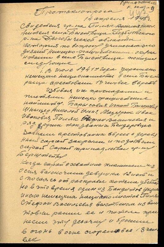 который по вопросу учиненых злодияний немецко-фашистскими окупантами в селе Быстрица показал