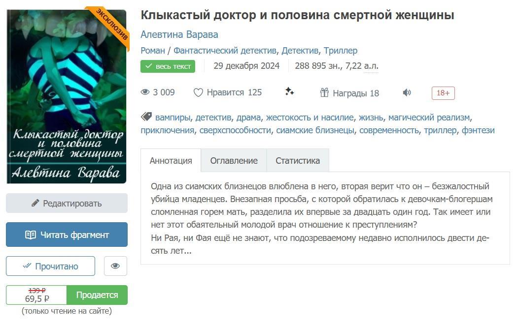 Детективный триллер о неразделённых сиамских близнецах и вампире нынче по скидке