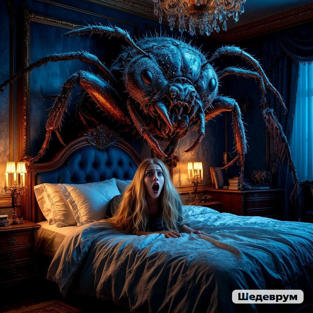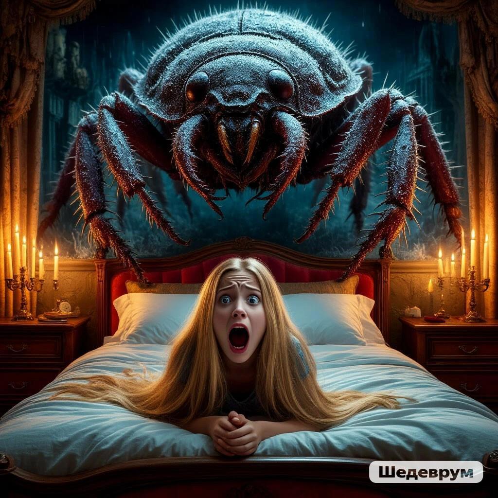 Пятница 13 и поэтому (Аааа!!!) гигантский жук лезет в постель юной блондинки