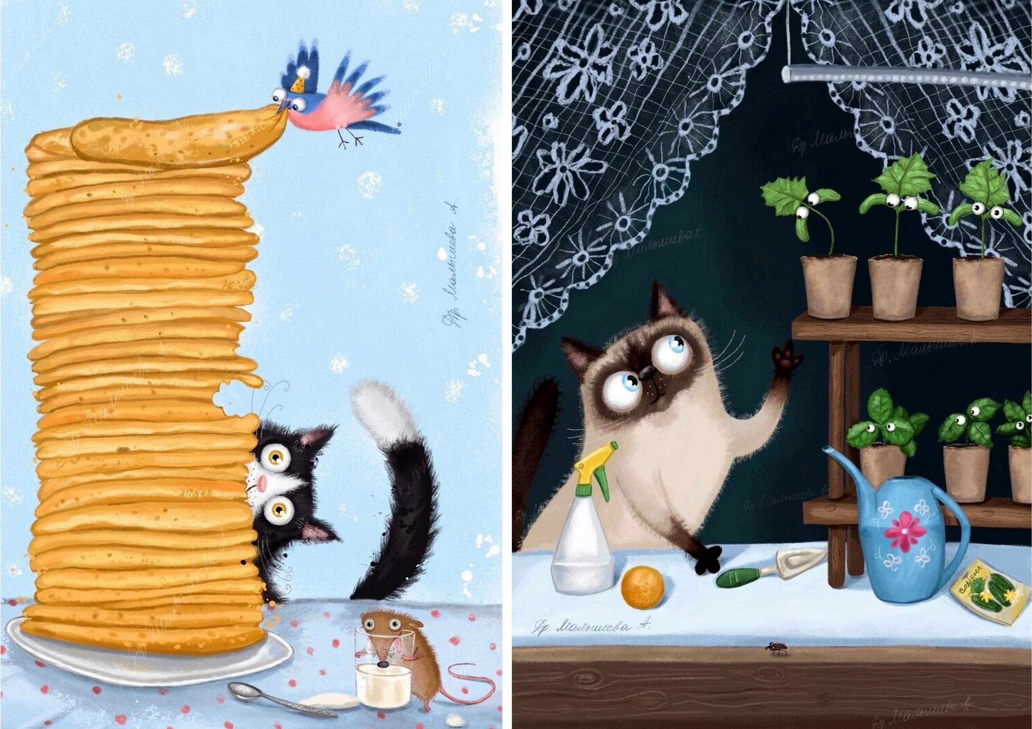 Дорогие друзья, давайте сегодня просто улыбнёмся. Добрые, милые и забавные герои работ Анастасии Малышевой очень к этому располагают!