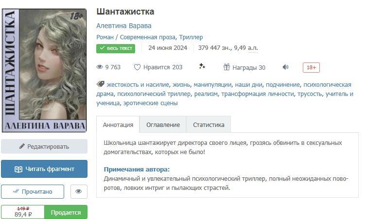 Автор: Алевтина ВараваОстросюжетный бесфэнтезийный роман о дикой ситуации, в которой оказался взрослый мужчина в современной Москве. Сейчас по скидке всего за 89 рублей! Неожиданные повороты в каждой главе. История запутывается больше и больше всякий день. Куда заведёт героя минутная трусость, боязнь скандала и разбирательств, которые могут уронить престиж дорогого учебного заведения?..