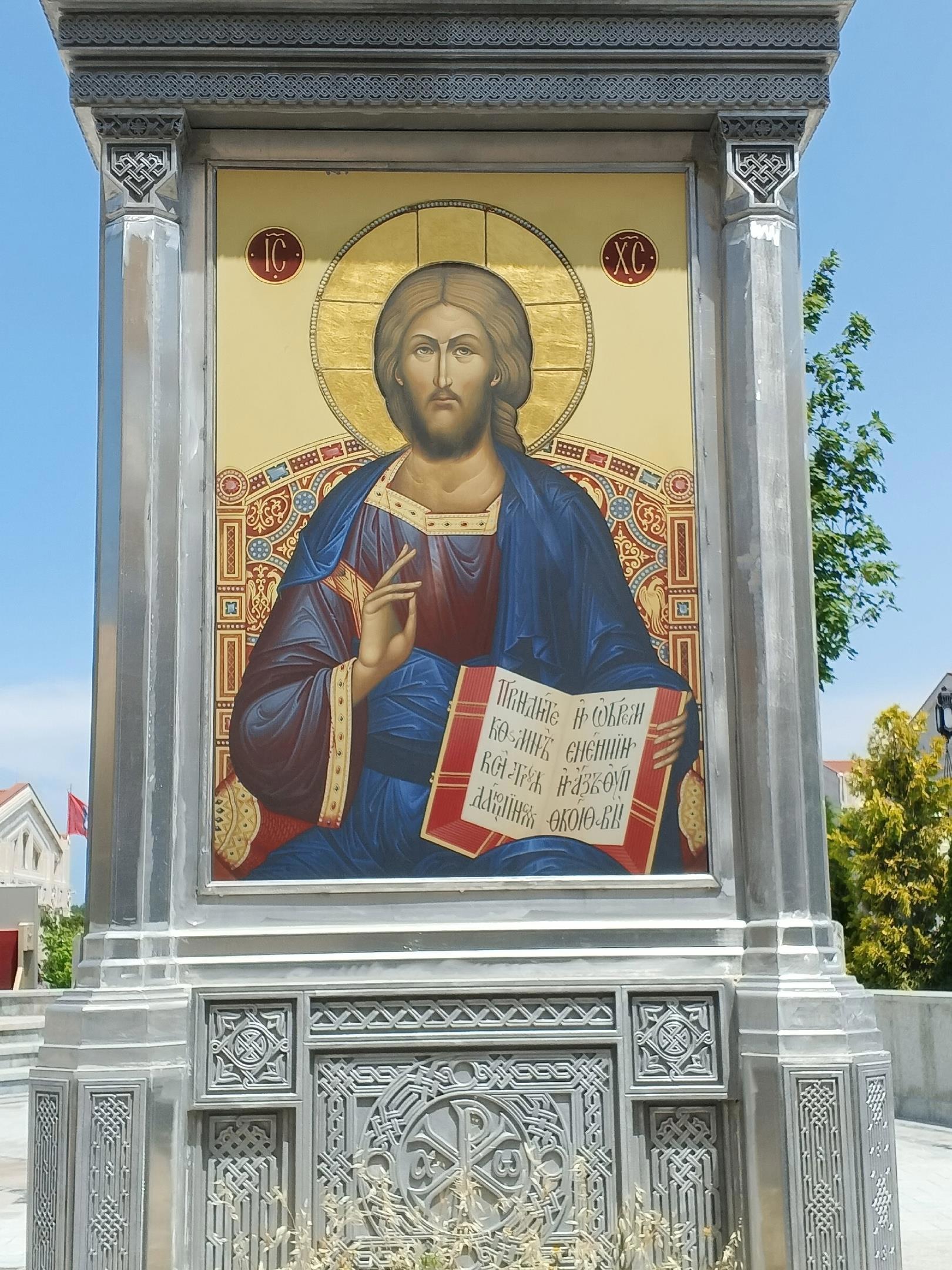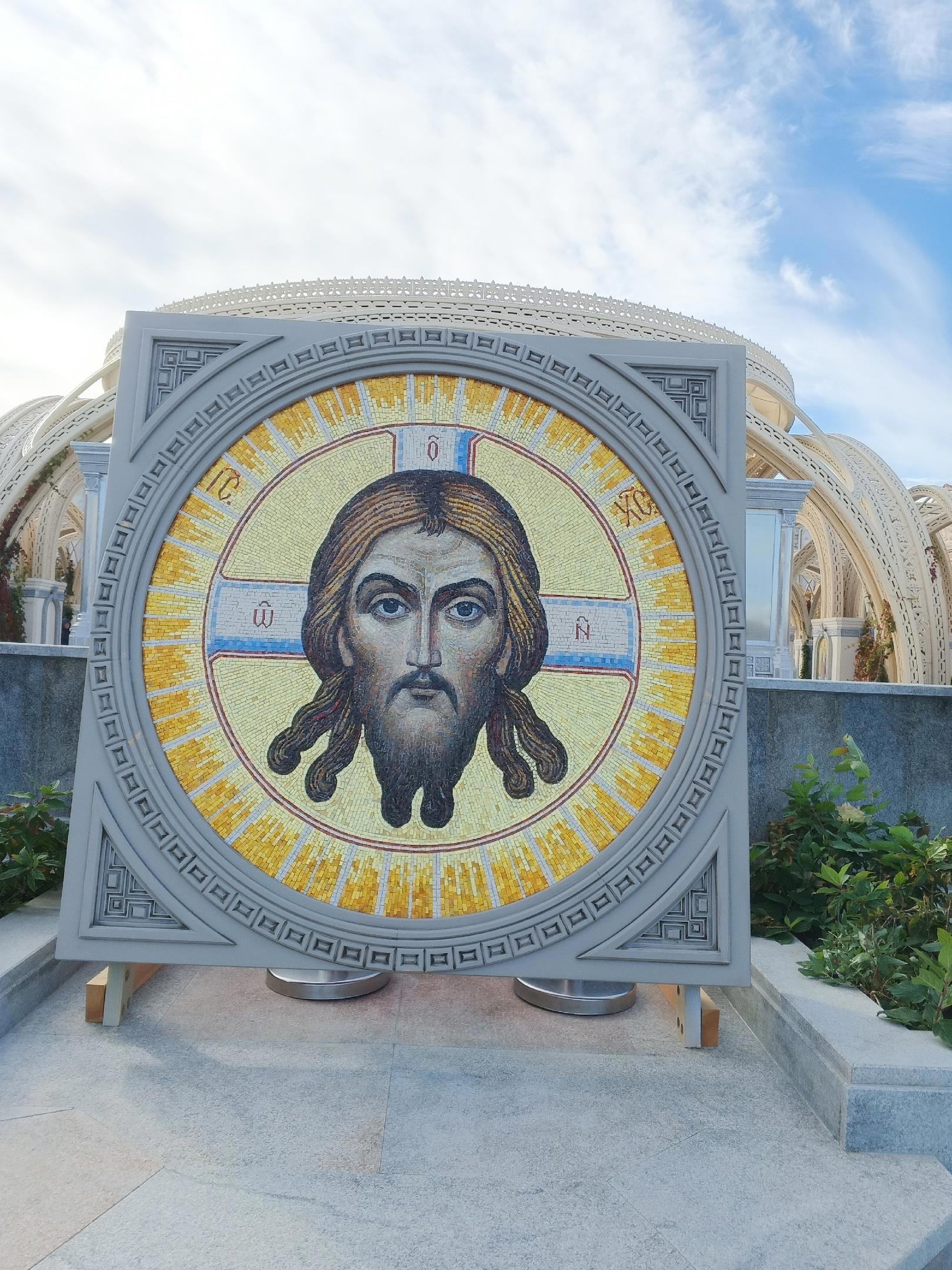 Ну и окончательно завершая сегодняшнюю прогулку, мы ещё раз приглашаем вас полюбоваться мозаичным панно "Спас Нерукотворный"