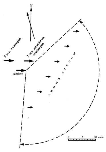 1, 4, часть 9 и 10, 11, 12, 13 флотилии эсминцев (всего 3 легких крейсера и 75 эсминцев).