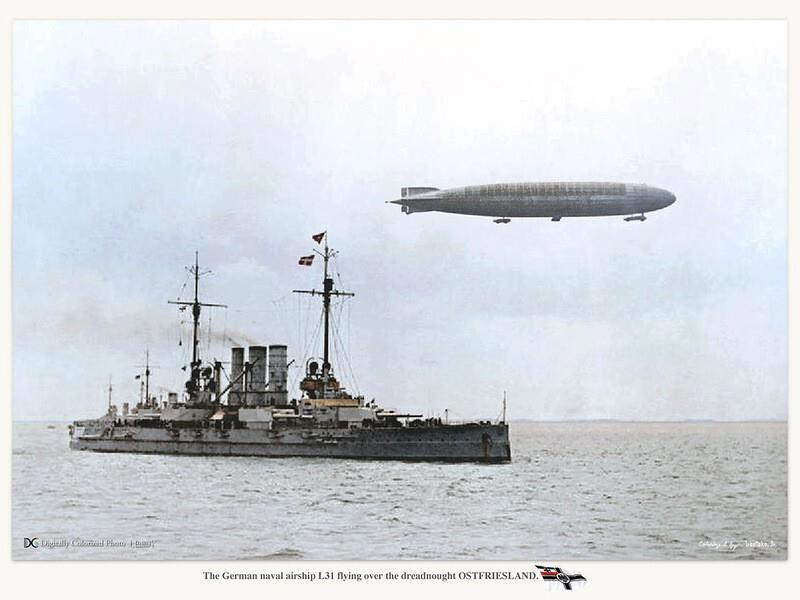 Дирижабль L-31 над линейным кораблём "Остфрисланд"