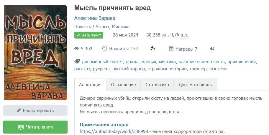 Реорганизация. "Мысль причинять вред" превратилась в мини-повесть