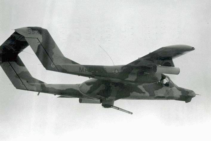 Но от запуска в серию Су-12, в 1947 году, в СССР отказались. Ну не было тогда БПЛА. И потребности, в самолёте, предназначенном для борьбы с ними не было. И можно сказать что согласно требованиям, вырисовывается самолёт, не так давно существовавший в металле. Который, вполне возможно ещё кое где и эксплуатируемый. Хотя бы в гражданской авиации. Да и последнее его применение в боевых действиях было отмечено в 2017 году. По крайней мере указывается что, на вооружении ВВС Венесуэлы и Индонезии состоят по 16 таких самолетов, а Таиланда использует 32 самолета, возможно они есть и в составе ВВС Филиппин. И этим самолётом был лёгкий штурмовик фирмы "Норт Америкен" OV-10А Bronco. Производившийся в 60-х годах ХХ века. При этом на разработку этого самолёта, в условиях конкурса, американцы потратили около 4 лет.