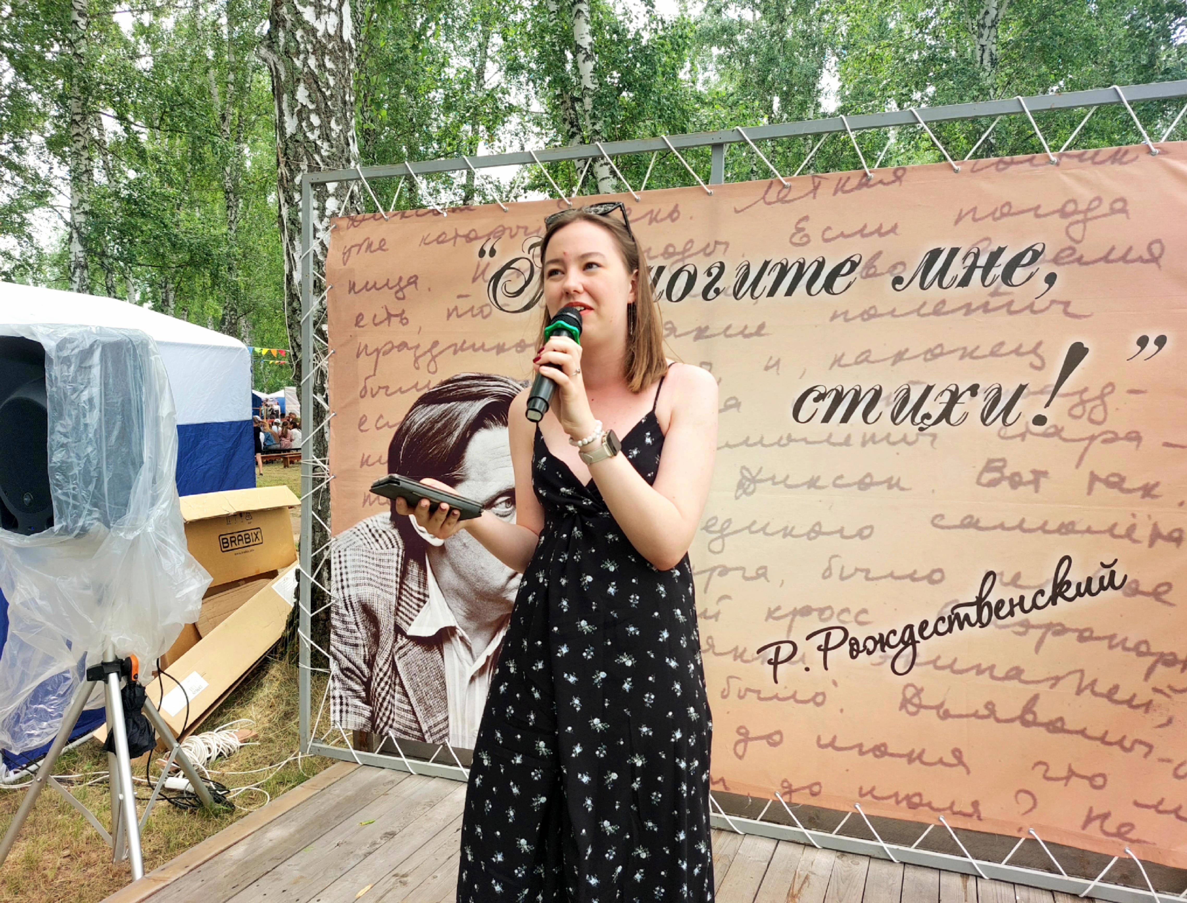 Фото: молодые +опытные авторы читают стихи на поэтической площадке фестиваля Роберта Рождественского