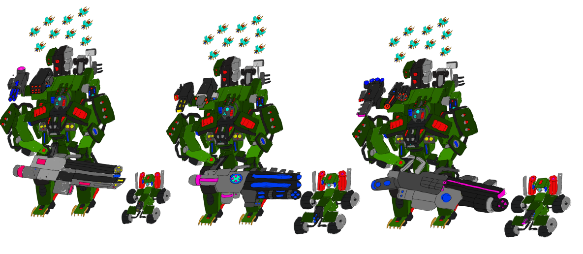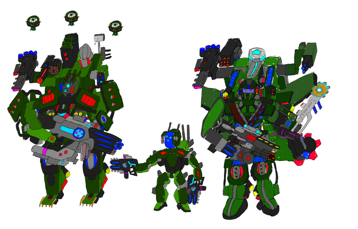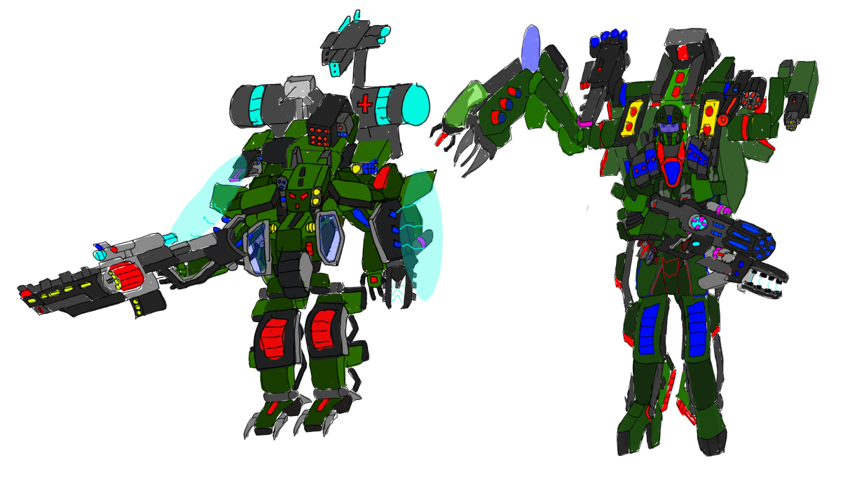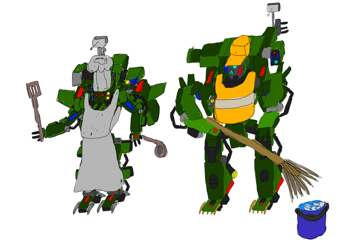 Герасим- более тяжёлая платформа. Он несёт более тяжелое вооружение в виде средних, тяжёлых и сверхтяжёлых стрелковых комплексов, и тяжёлое двуручное холодное оружие.