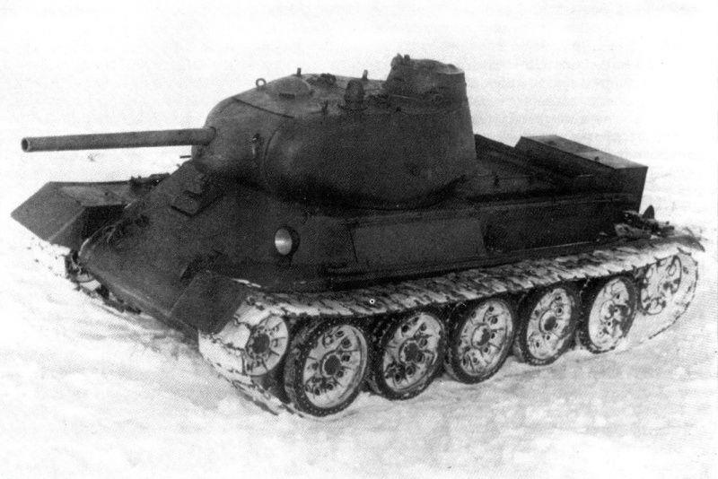 Но продолжим рассказывать про неизвестные советские танки 2-й мировой. Про проект Т-34М, я уже писал, но наработки этого проекта оказались востребованы. В 1943 году на вооружение был принят танк Т-43, являвшийся прямым наследником проекта Т-34М. Но появление на полях сражений "Тигров" и "Пантер", не позволил этой машине пойти в большую серию. Но он послужил основой, для лучшего танка ВОВ, Т-44. Уже к середине 1942 года стало ясно, что Красной Армии требуется новый средний танк. Проектирование такого танка, получившего название Т-43, завершили к июню 1943 года. Главное требование военных, обеспечить максимум защиты при минимальном увеличении массы, было выполнено. Его корпус, унаследовавший конфигурацию Т-34, уже имел круговое 75-мм бронирование. Толщину лобовой части башни, в которой была установлена 76,2-мм танковая пушка Ф-34, довели до 90 мм (против 45 мм у Т-34). А вот длину моторно-трансмиссионного отделения сократить не удалось, в результате чего боевое отделение получилось меньше. Поэтому, чтобы обеспечить экипажу необходимое внутреннее пространство, конструкторы применили торсионную подвеску, более компактную, чем свечная с вертикальными пружинами, как на танках БТ и Т-34. Превосходя Т-34 по бронезащите и не уступая по вооружению тяжелому танку КВ-1 и КВ-1с, средний танк Т-43 однако, приблизился к тяжелым танкам по удельному давлению на грунт, что отрицательно сказалось на проходимости и запасе хода. И его конструкция вышла предельной, исключающей дальнейшую модернизацию. И когда серийную "тридцатьчетверку" оснастили 85-мм пушкой, нужда в Т-43 временно отпала, хотя именно башня от Т-43 с небольшими изменениями была использована для танка Т-34-85, поэтому опыт работы над ним не пропал даром. Дело в том, что испытательный пробег Т-43 на 3 тыс. км. наглядно доказал правильность выбора для среднего танка торсионной подвески и бесперспективность поэтапного изменения традиционной компоновки.